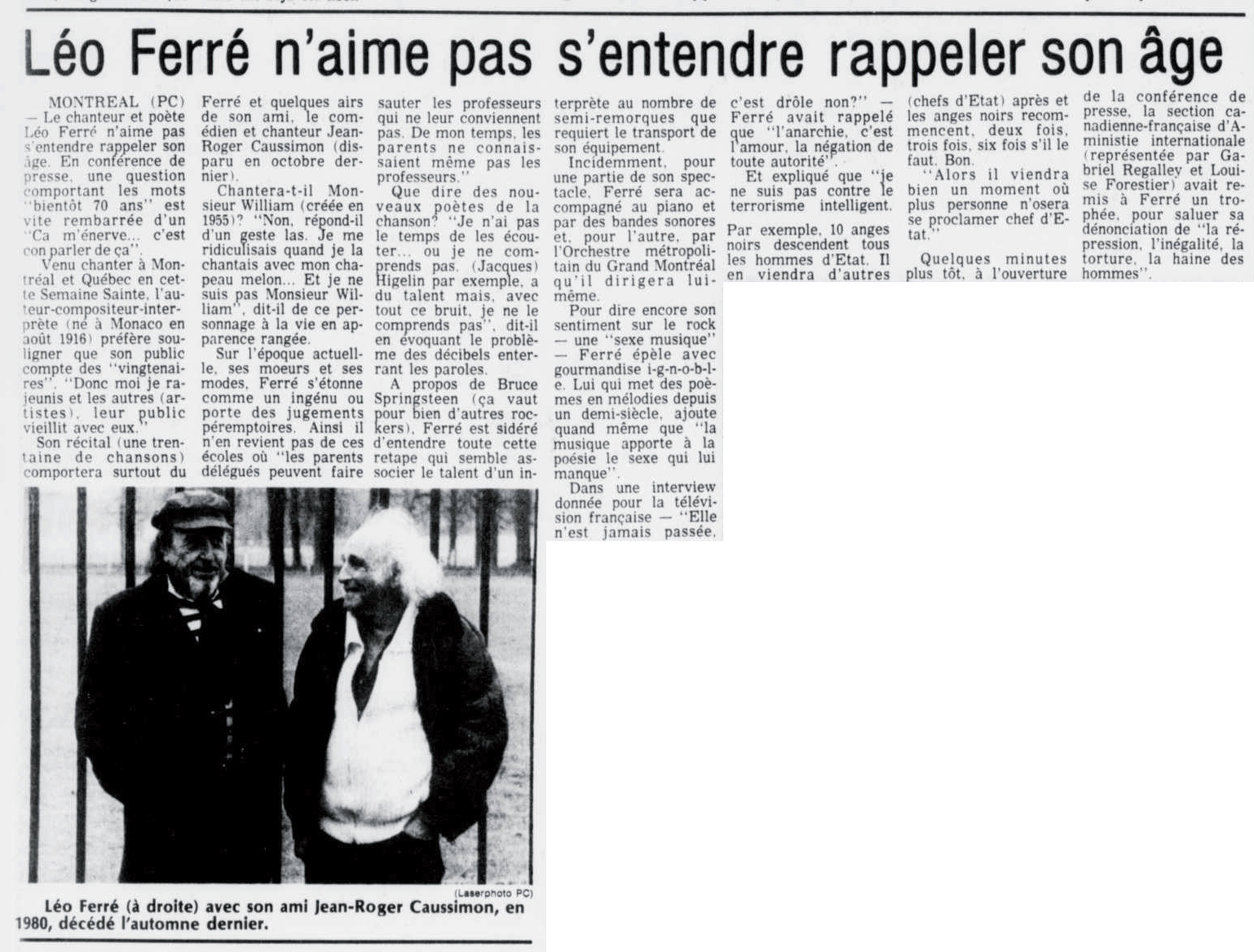 • Léo Ferré n'aime pas s'entendre rappeler son âge