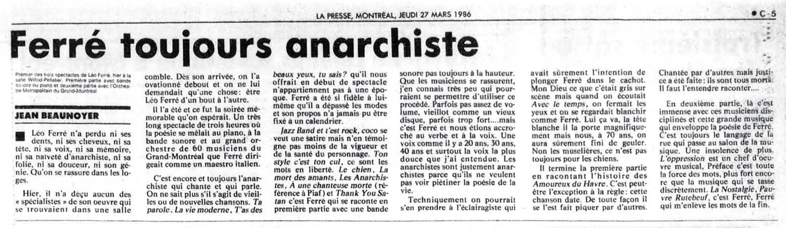 La Presse, 26 mars 1986, C. Arts et spectacles