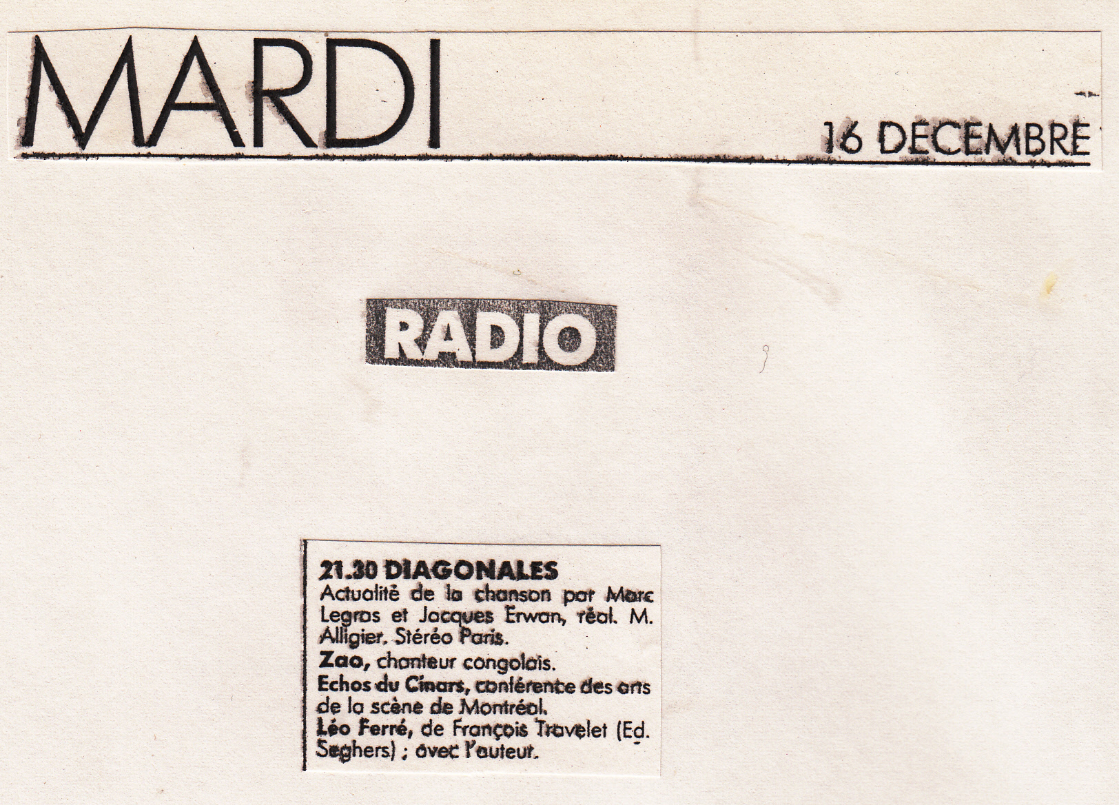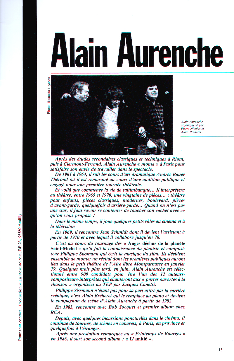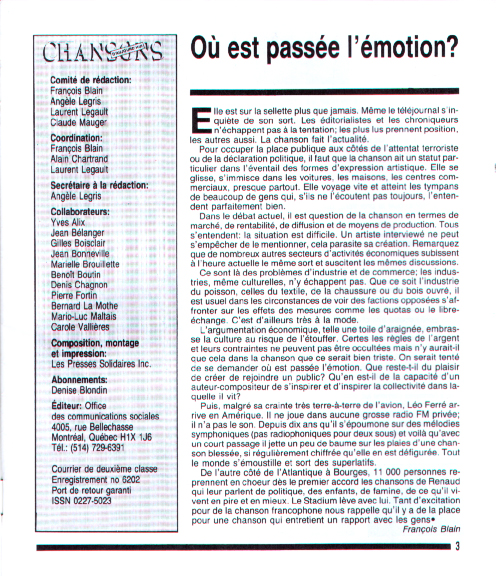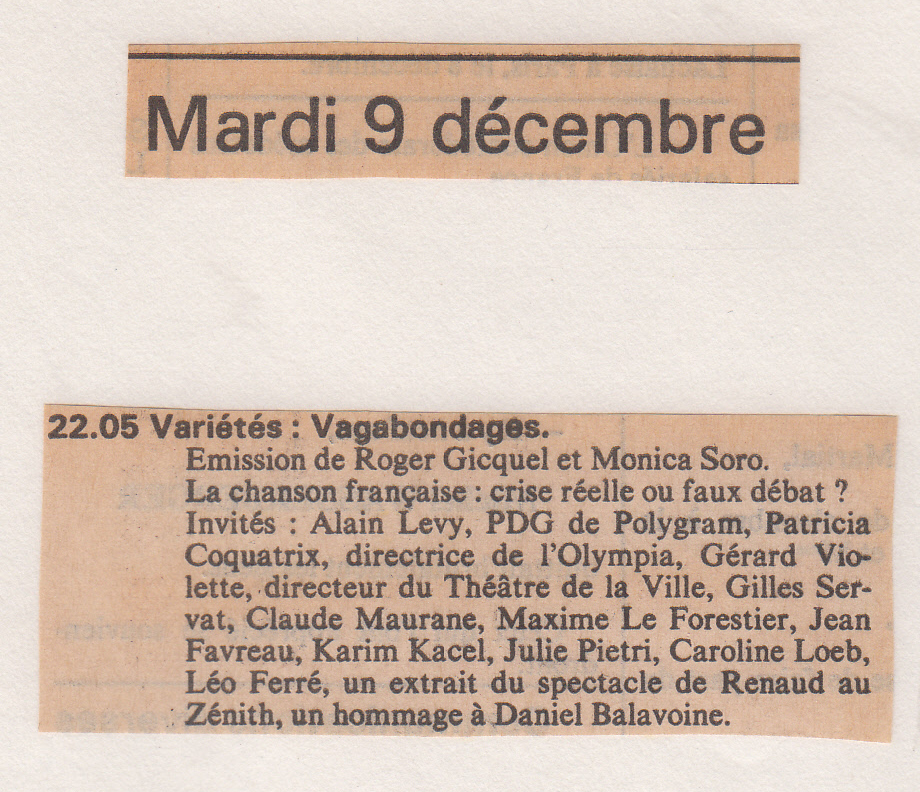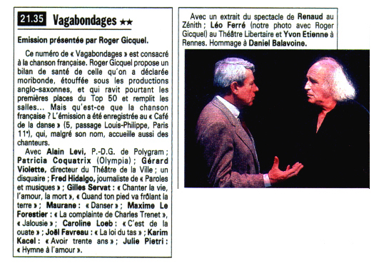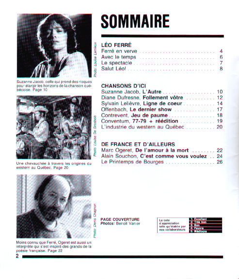 Cf. également "Chansons d'aujourd'hui N°2 Vol 9 des mois de mars et avril 1986"
