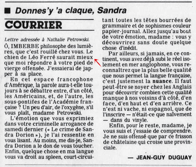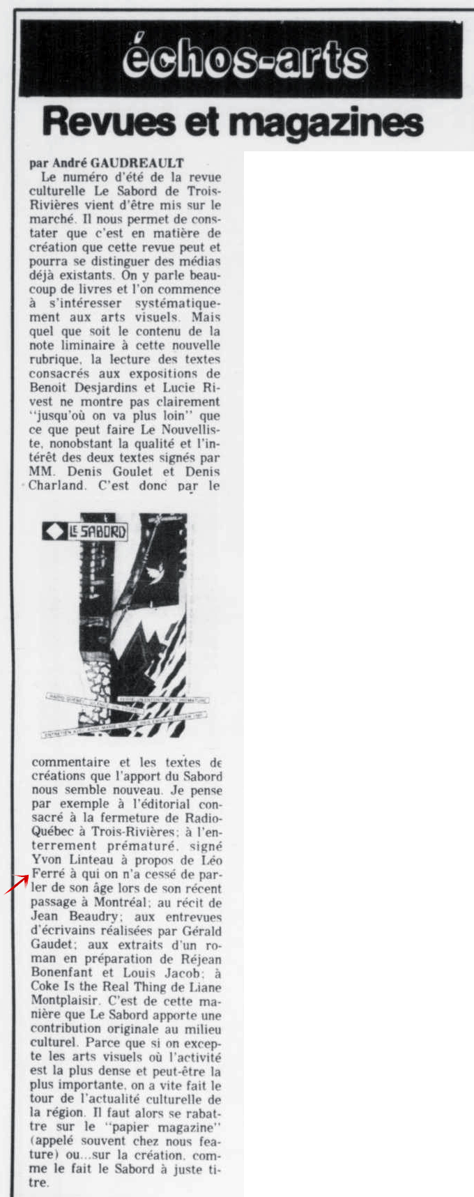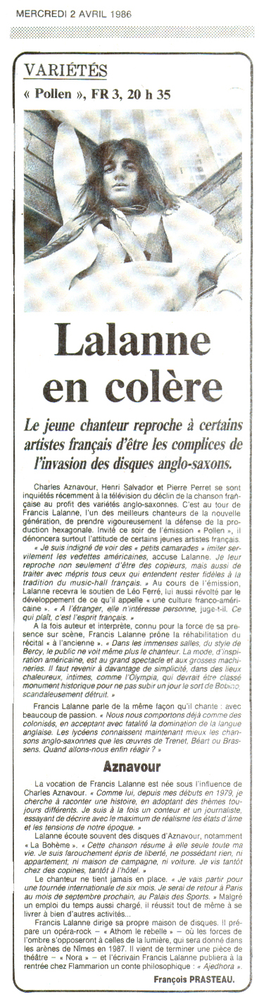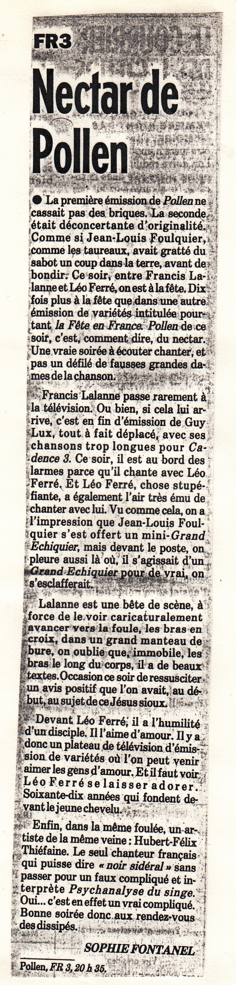 Merci à Alain Lochon, enfin le visuel correct de cette coupure de presse ! Ainsi qu'à Jacques Layani pour le second partage !