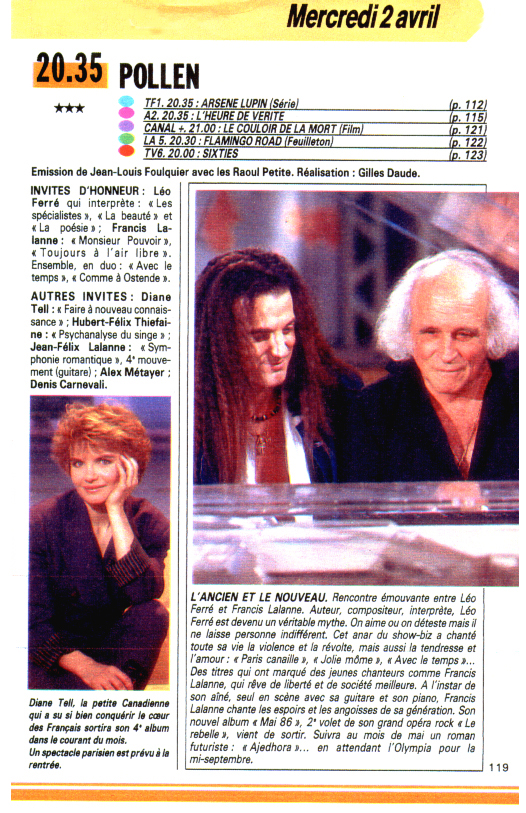 JT France 2 du ??/10/1986, annonce TLP - Les Poètes