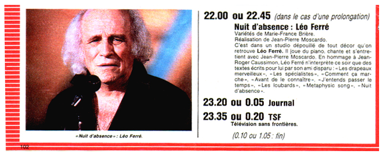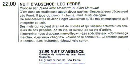• Après 10 d'absence Léo Ferré - Complet - Publicité