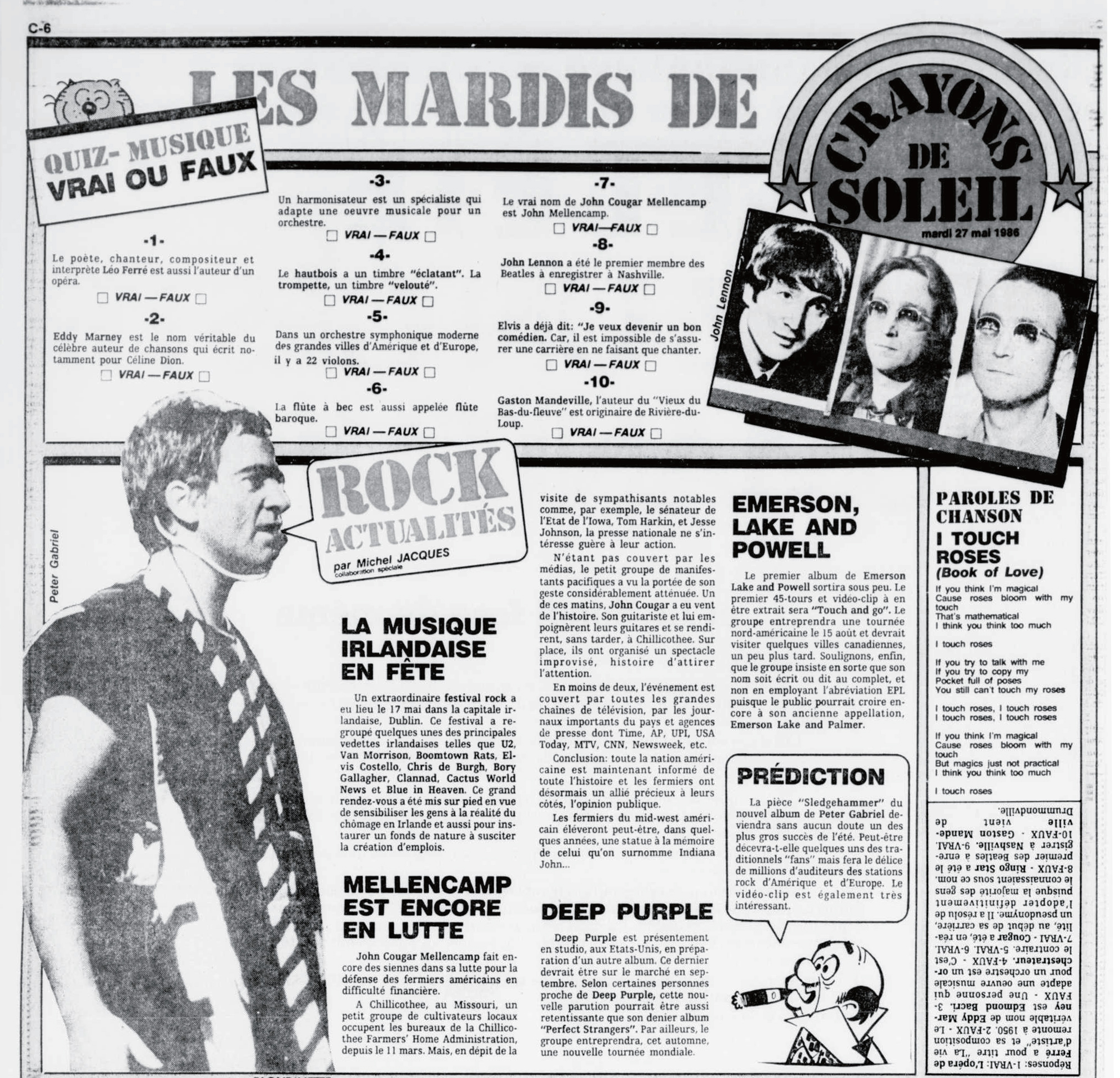 La Presse, 25 mars 1986, C. Arts et spectacles