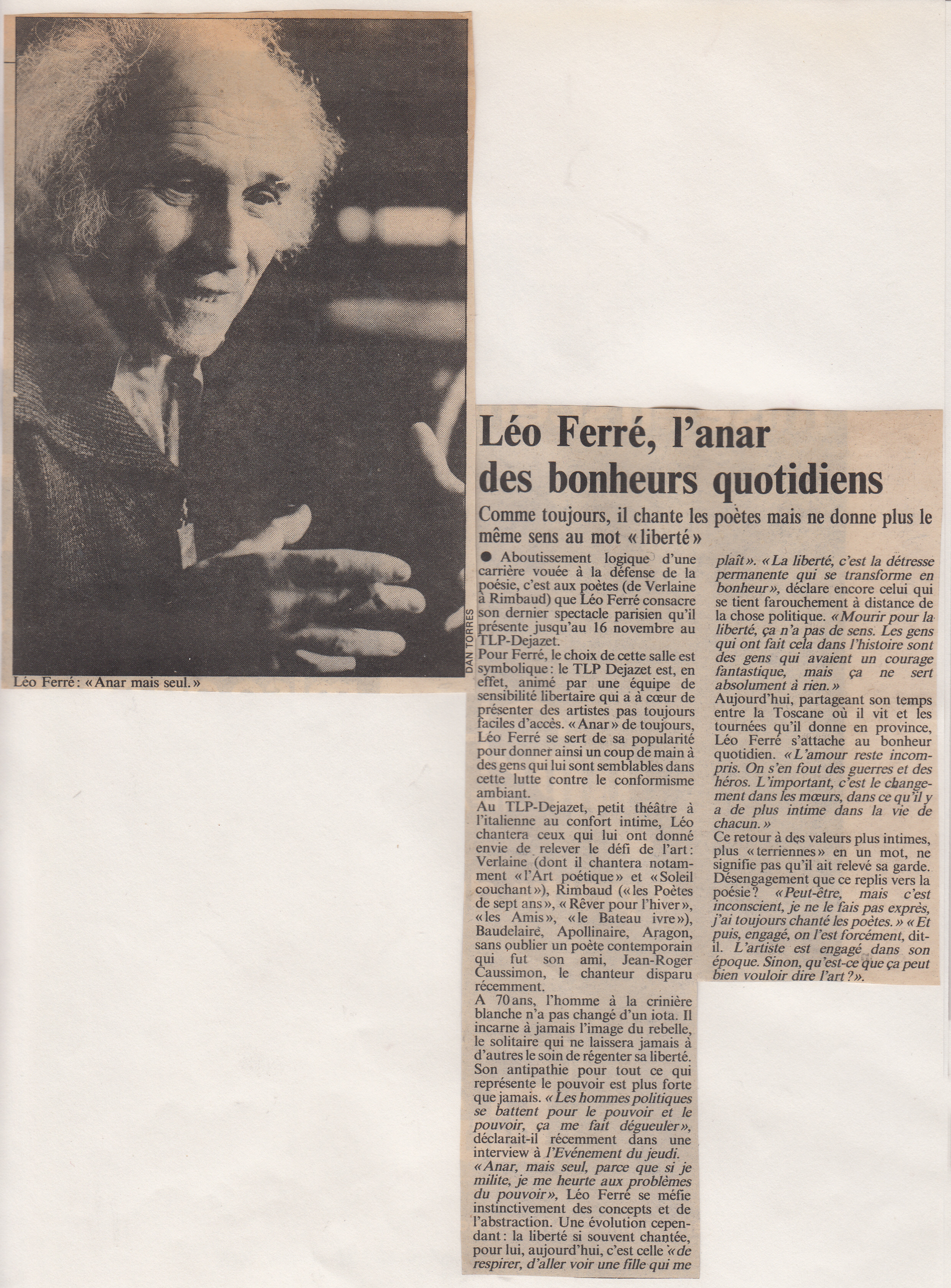 • Léo Ferré, l'anar des bonheurs quotidiens