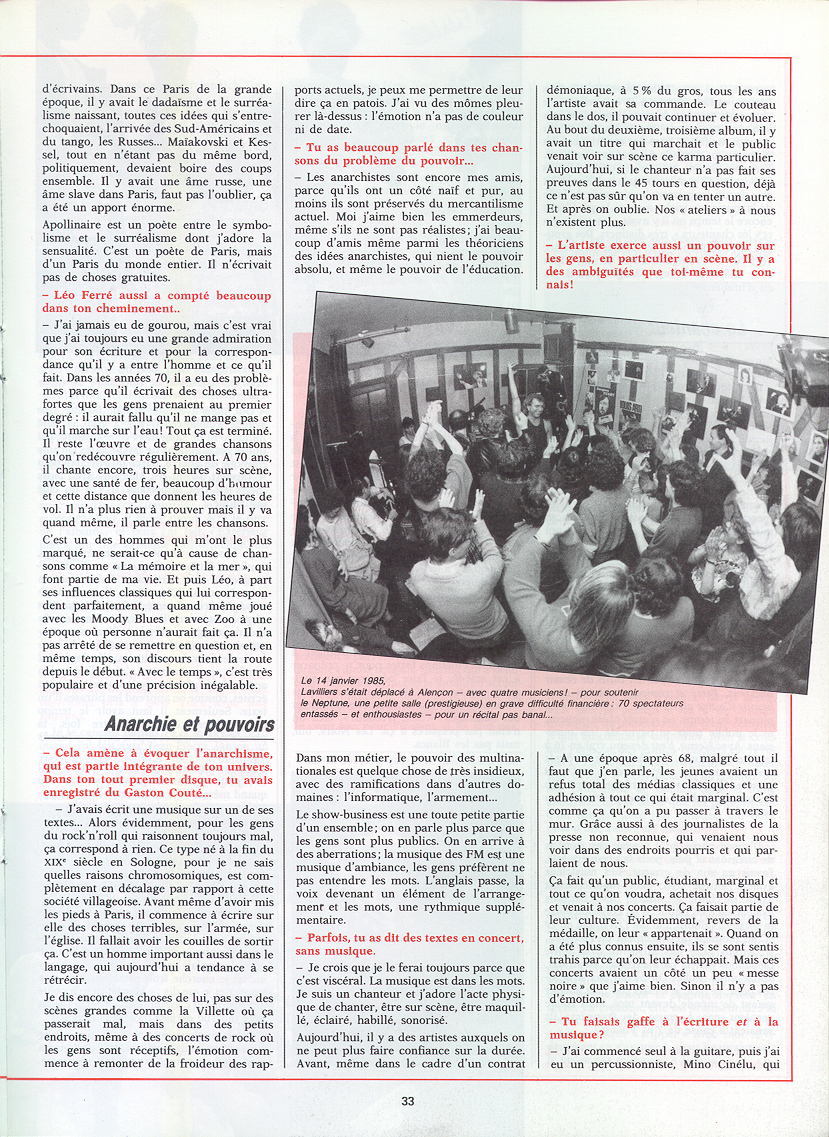Paroles et Musique N°64, mensuel de Novembre 1986