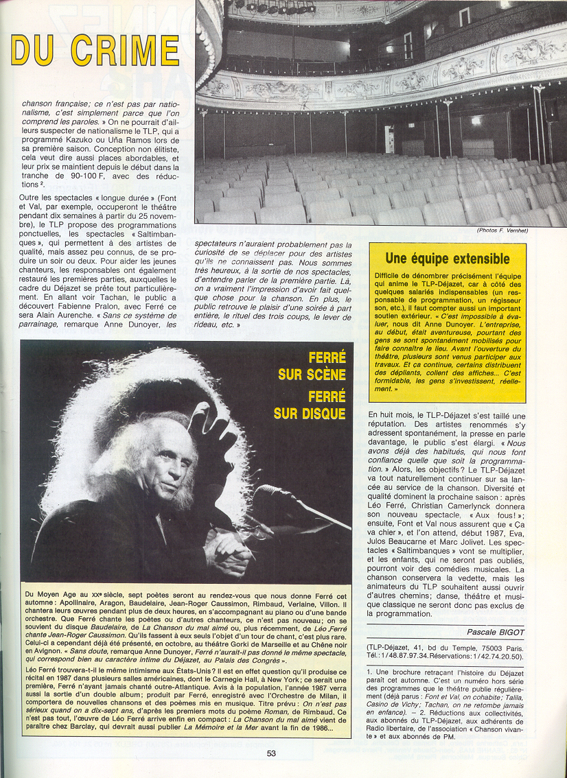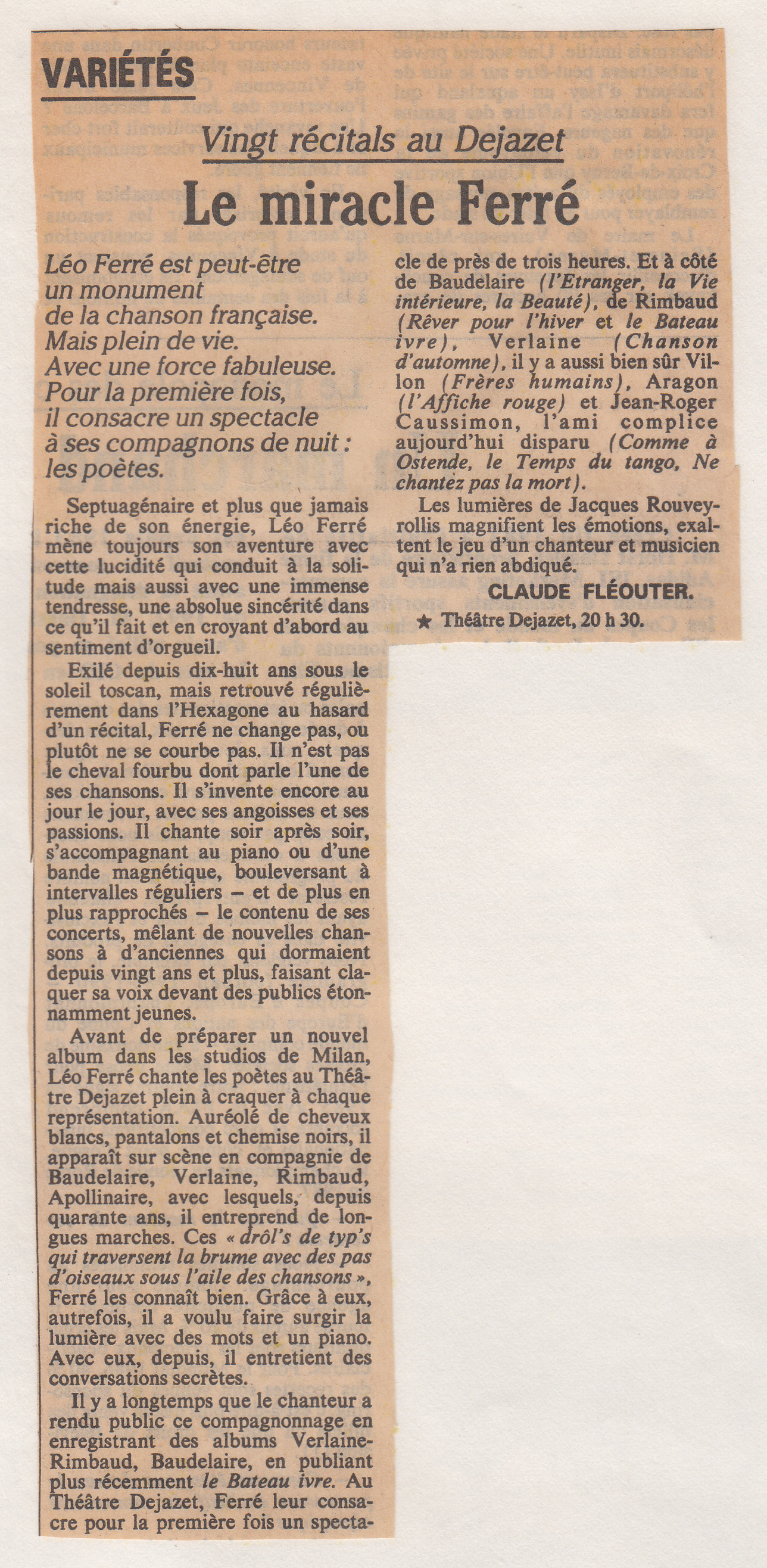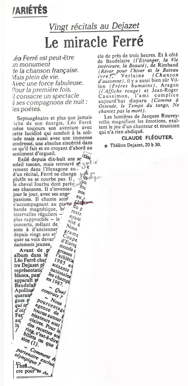 • Vingt récitals au Dejazet - Le miracle Ferré