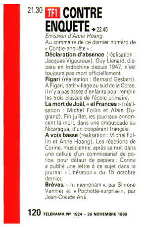Contre enquête - La mort de Joël, "el frances", émission du 02/12/1986