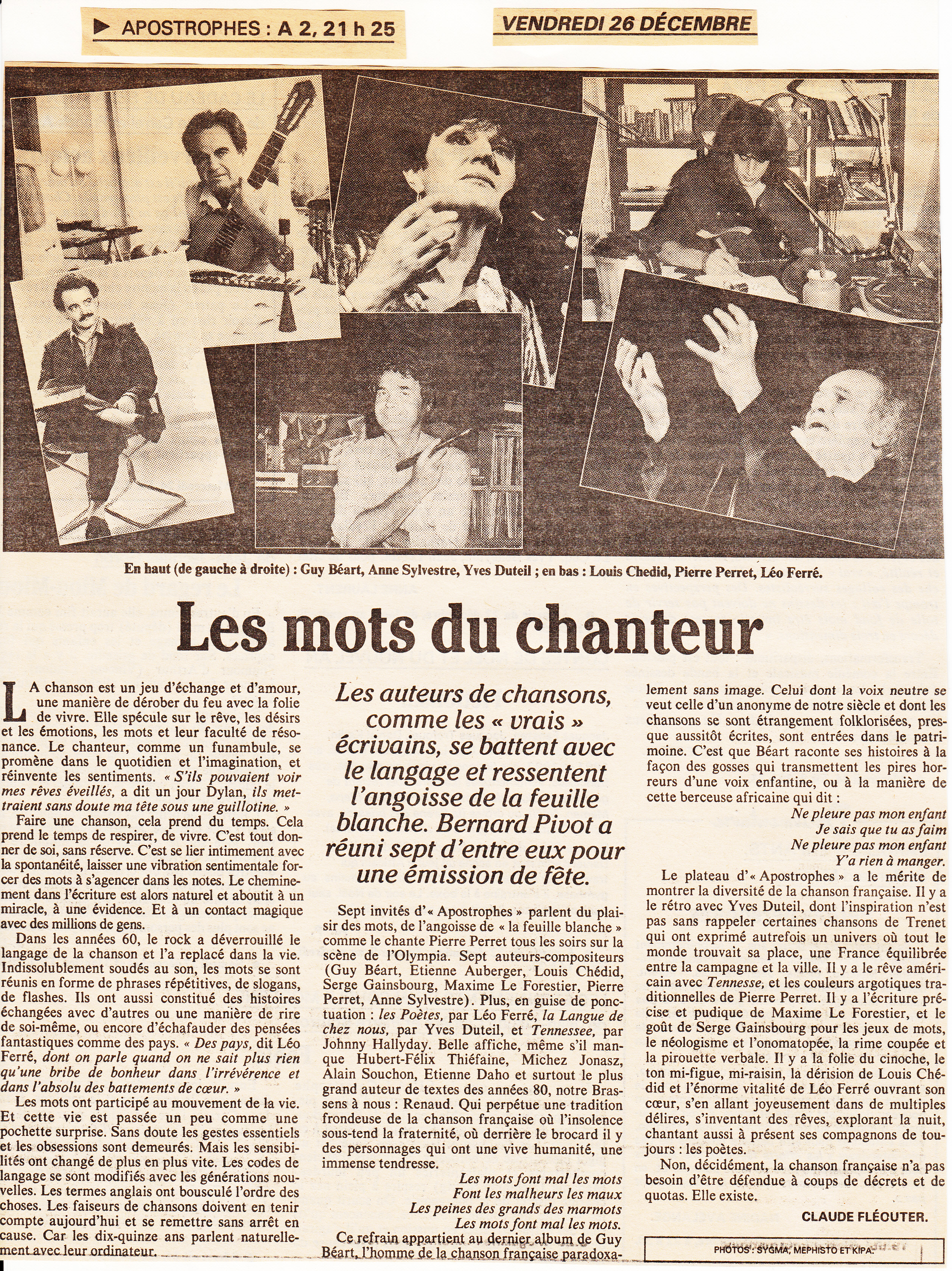 Apostrophes, émission du 26/12/1986, notice descriptive