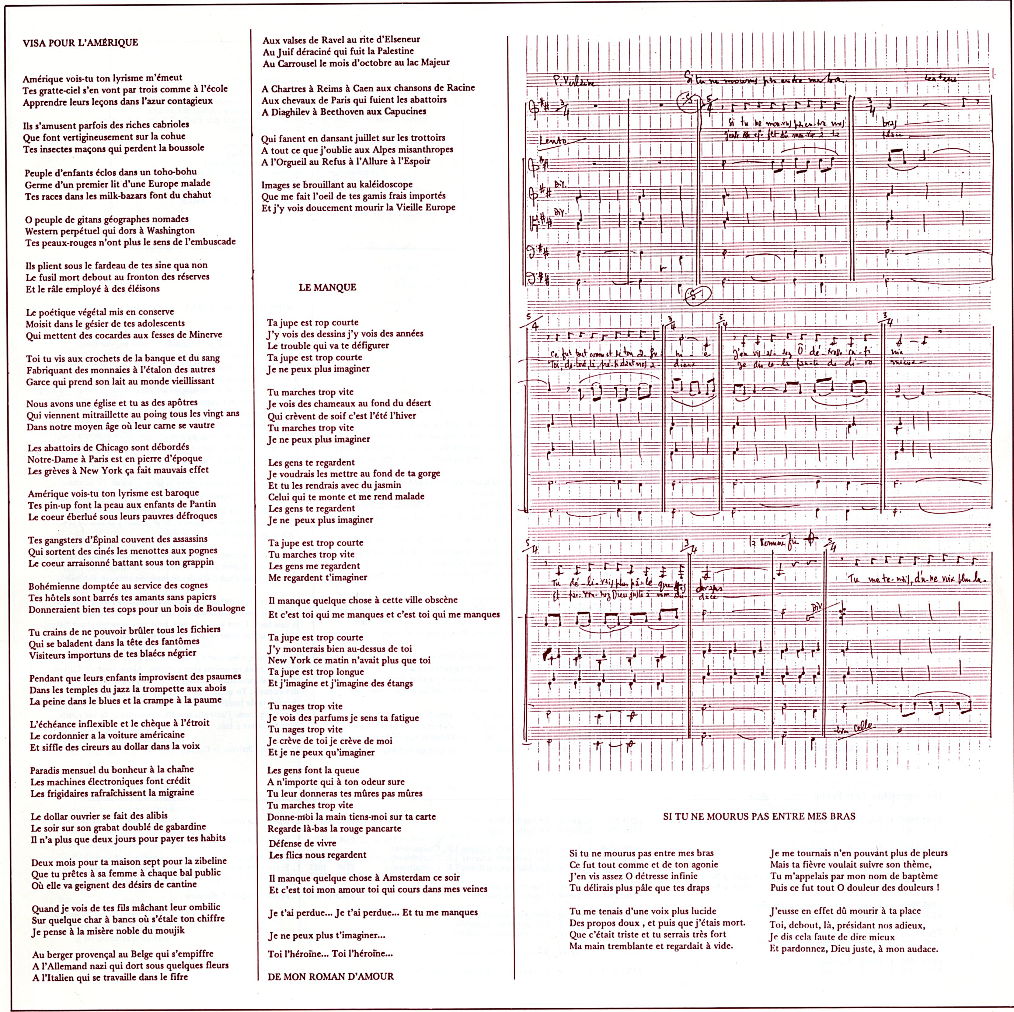 Ta parole - La vie moderne - T'as de beaux yeux tu sais ! - Madame la misère - Il n'y a plus rien - Avec le temps - (Unknown) - Le jazz band - T'es rock coco - Ton style - La porte - La Marseillaise - Marizbill - Le chien - La mort des amants - Les anarchistes - À une chanteuse morte - Thank You Satan - Les amoureux du Havre - (Une insolence de plus) - L'oppression - Préface - La nostalgie - Pauvre Rutebeuf