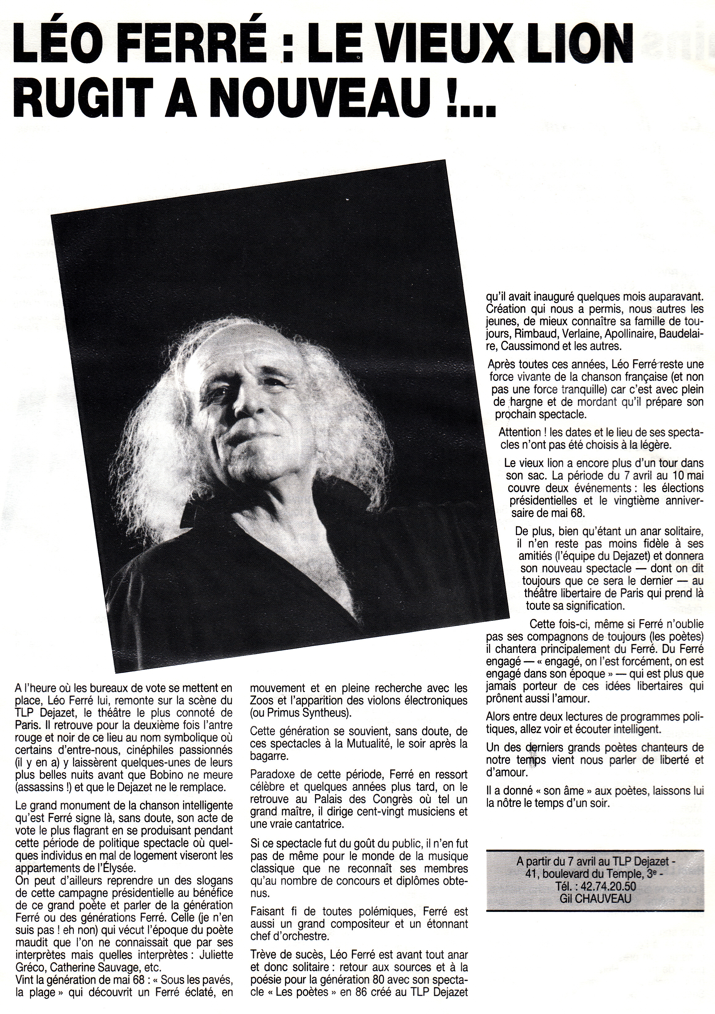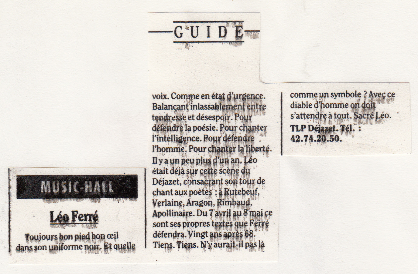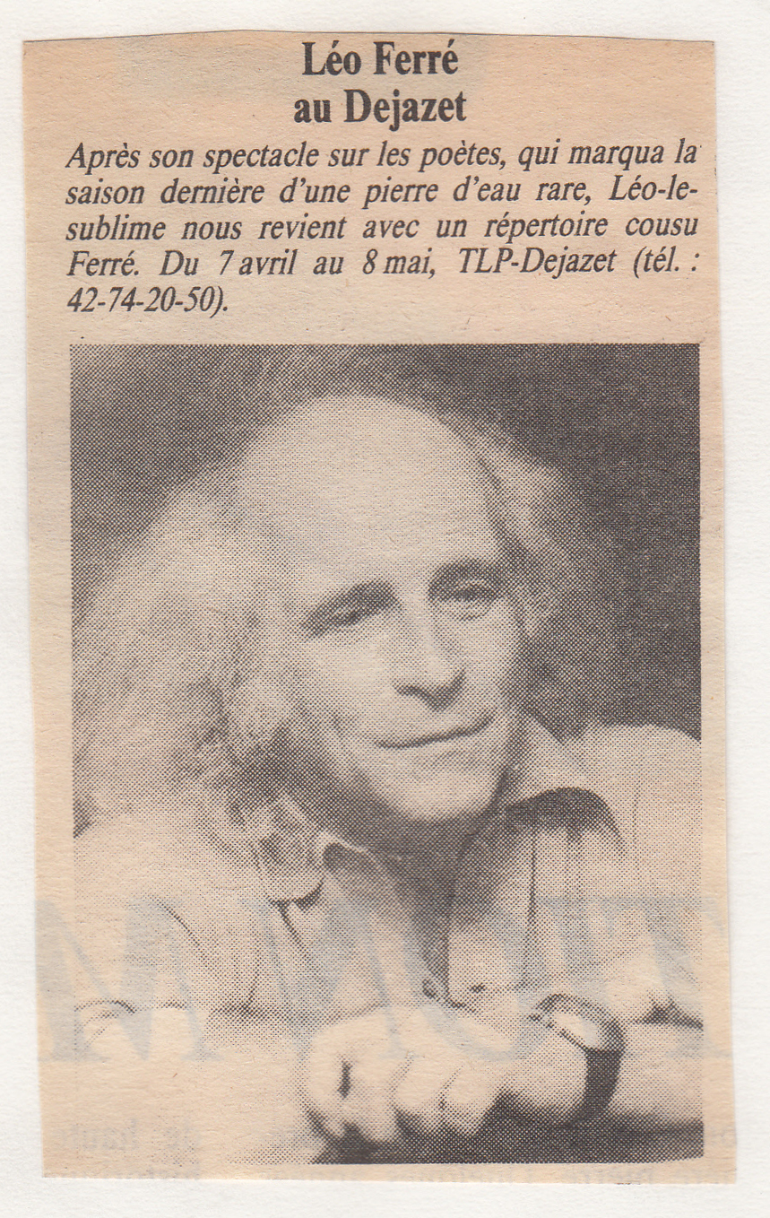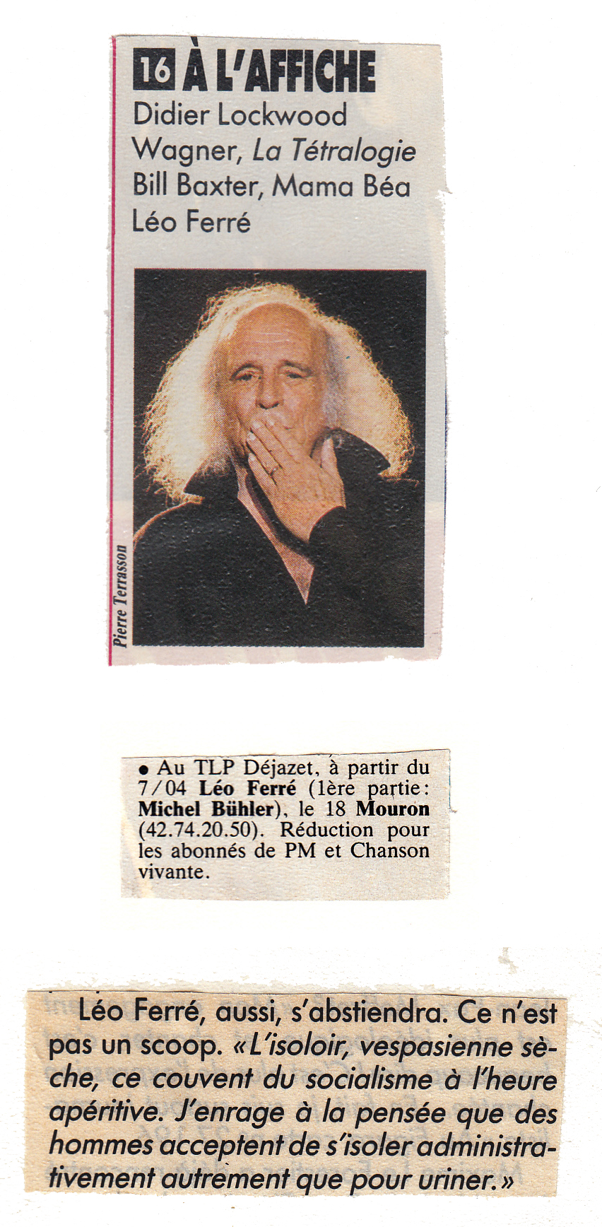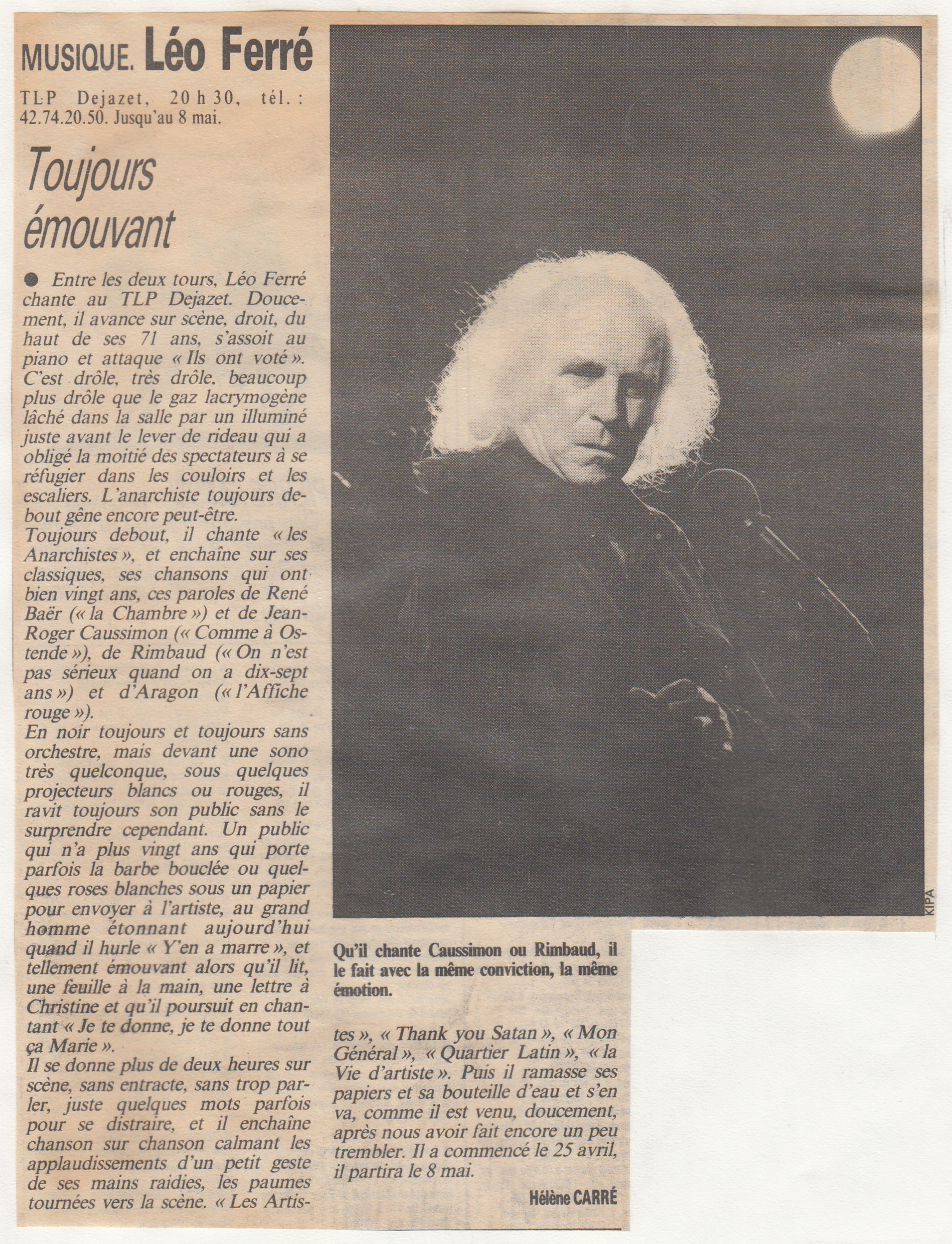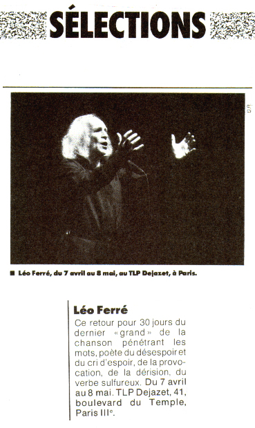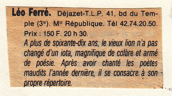 • Léo Ferré (samedi 4 février (1989), 20h30