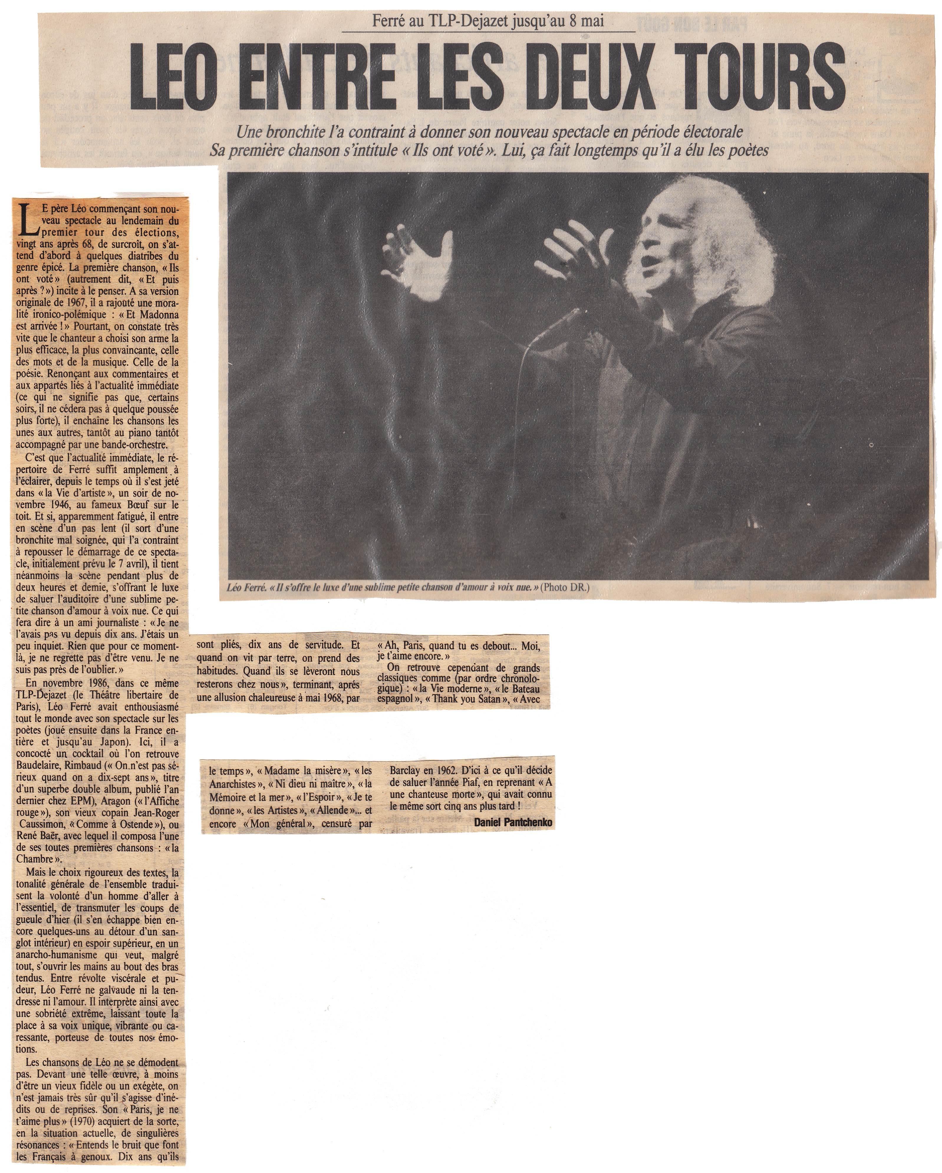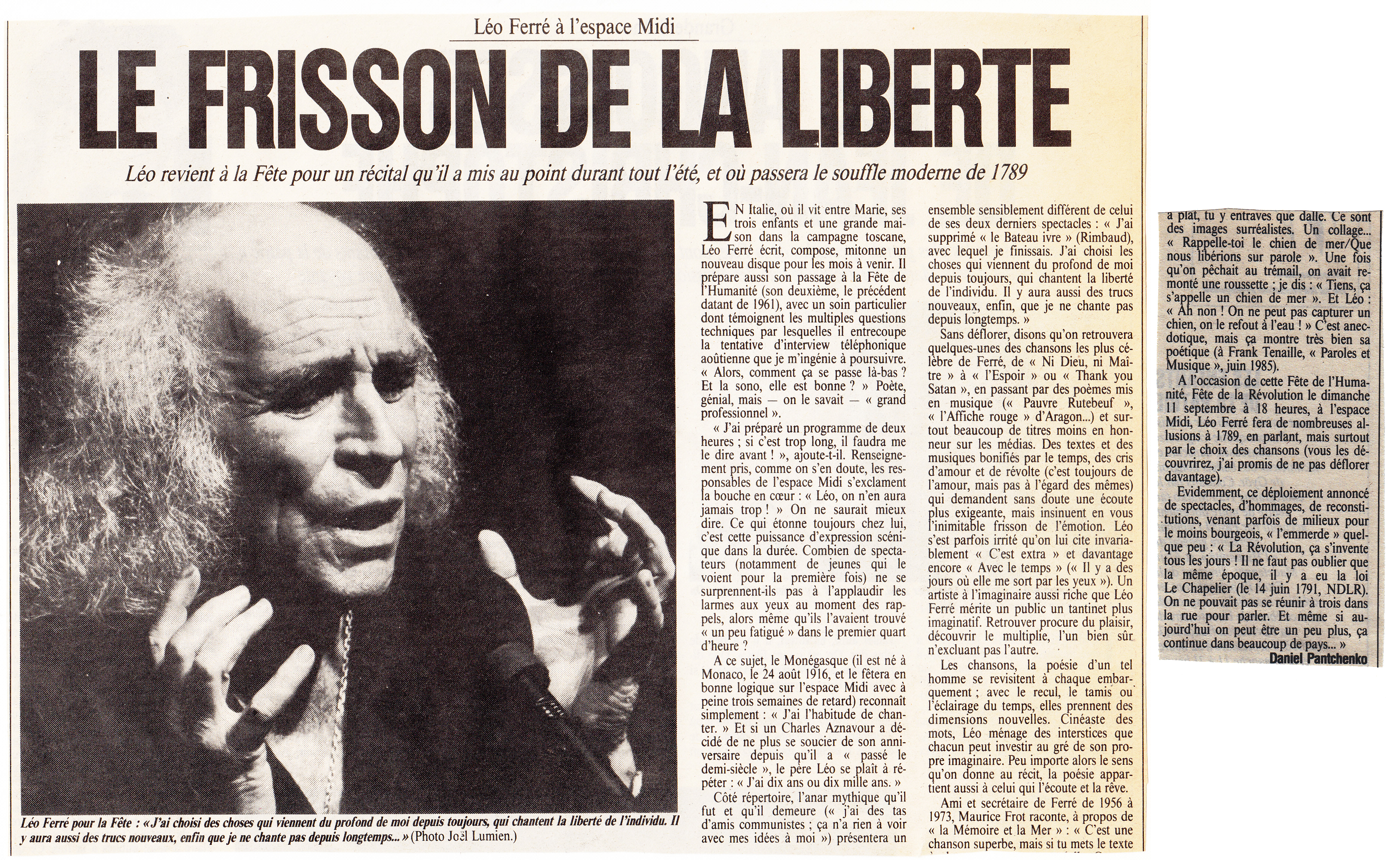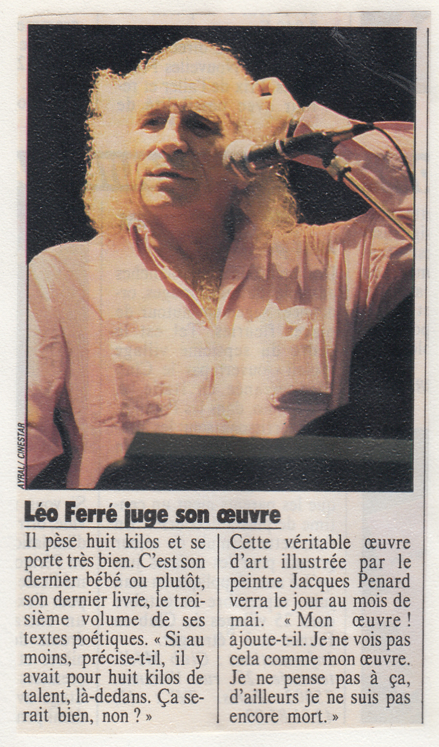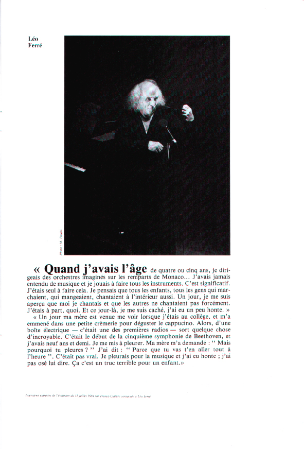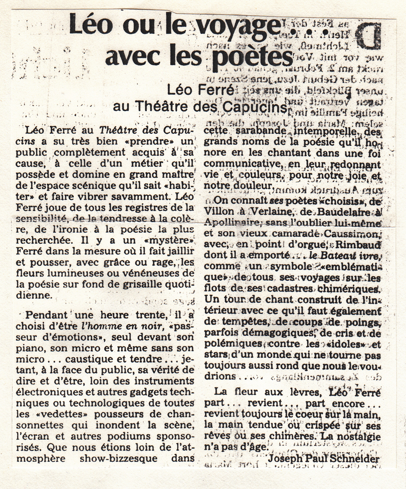 • Léo Ferré (samedi 4 février (1989), 20h30