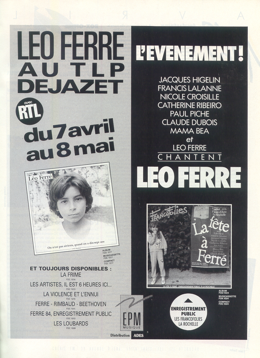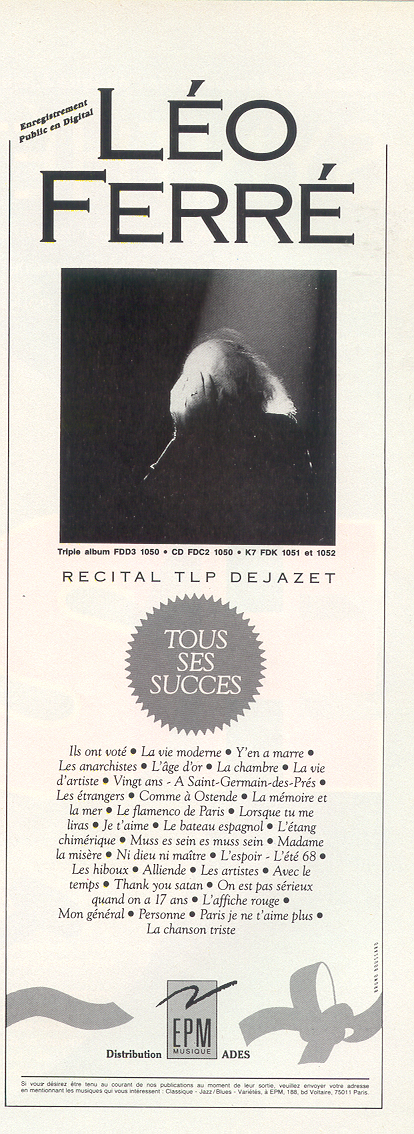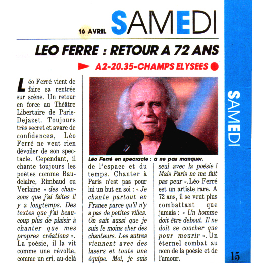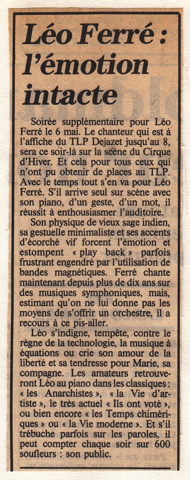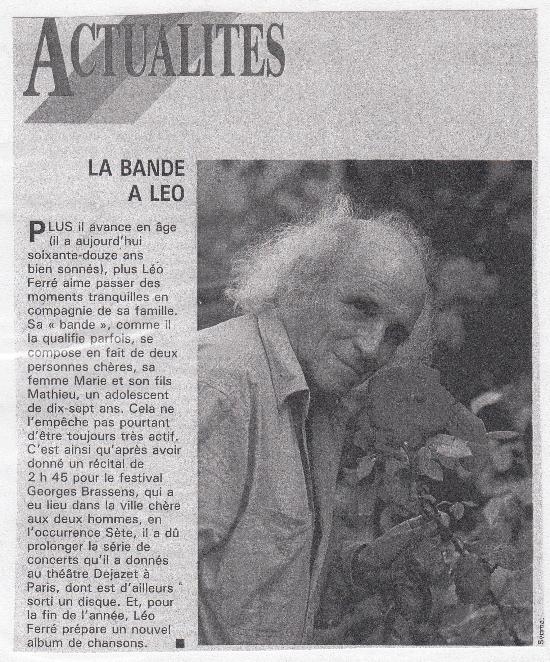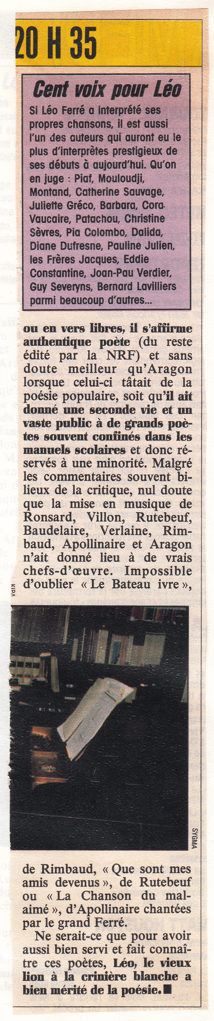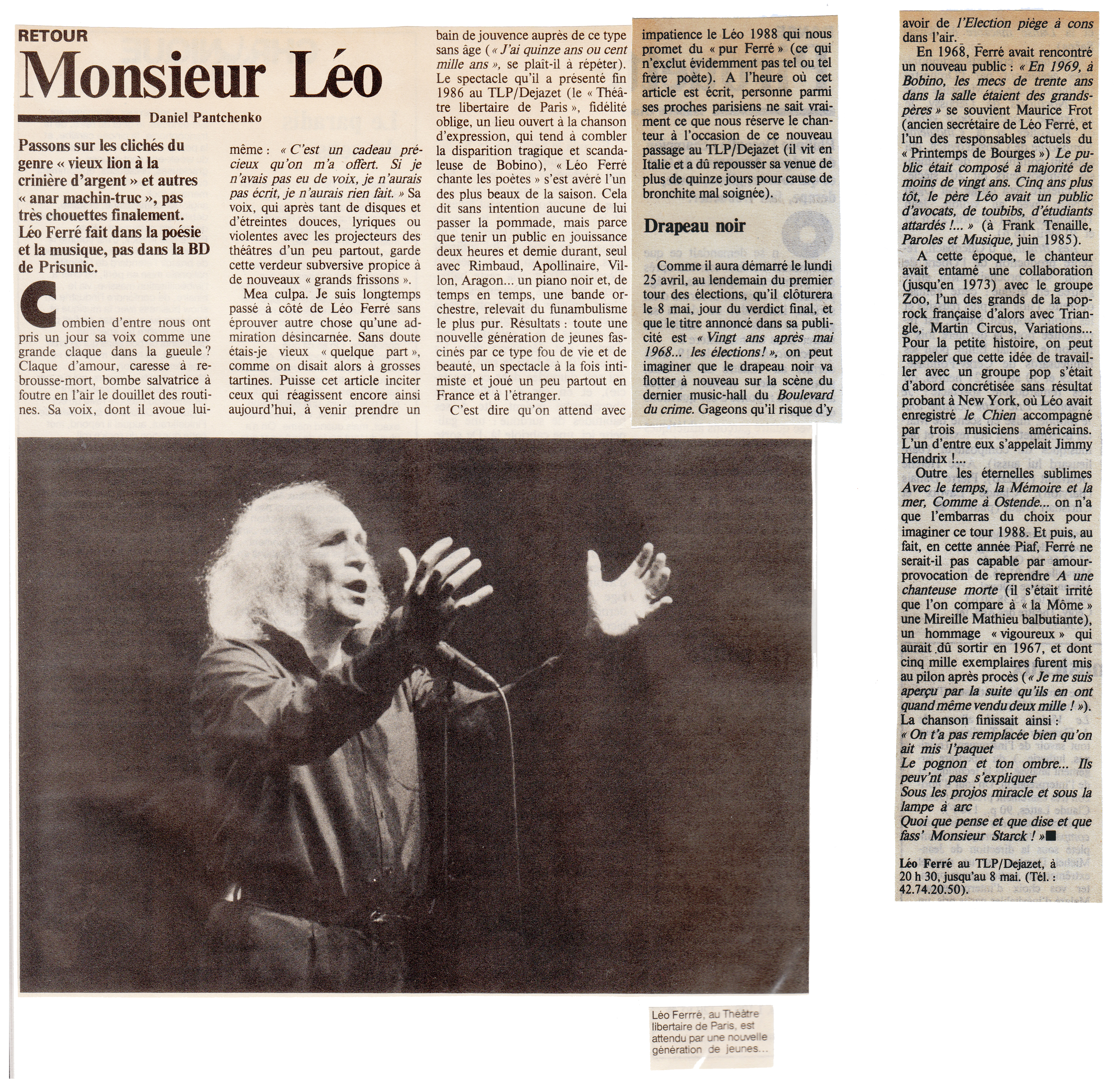 • Léo Ferré (samedi 4 février (1989), 20h30
