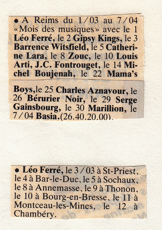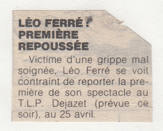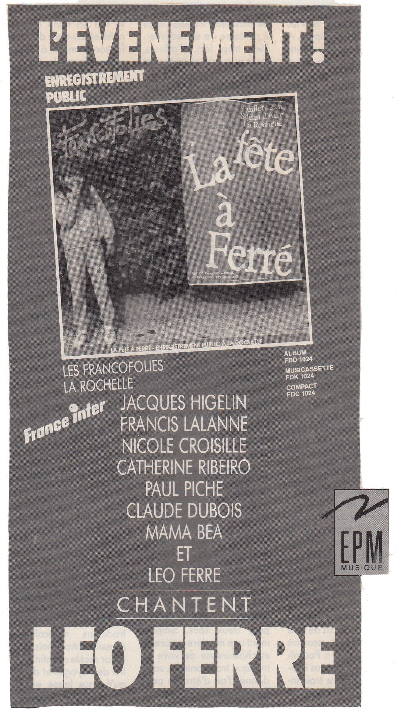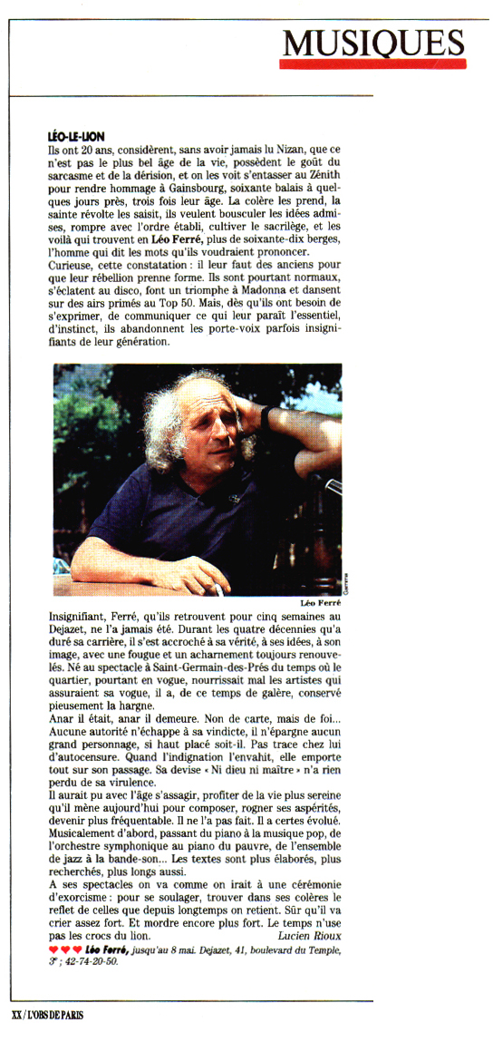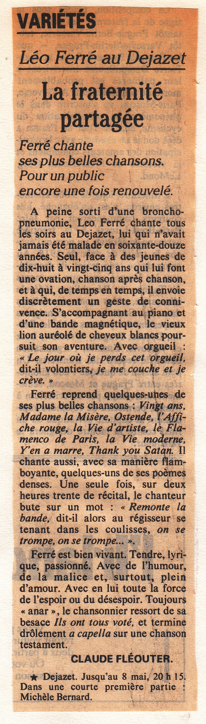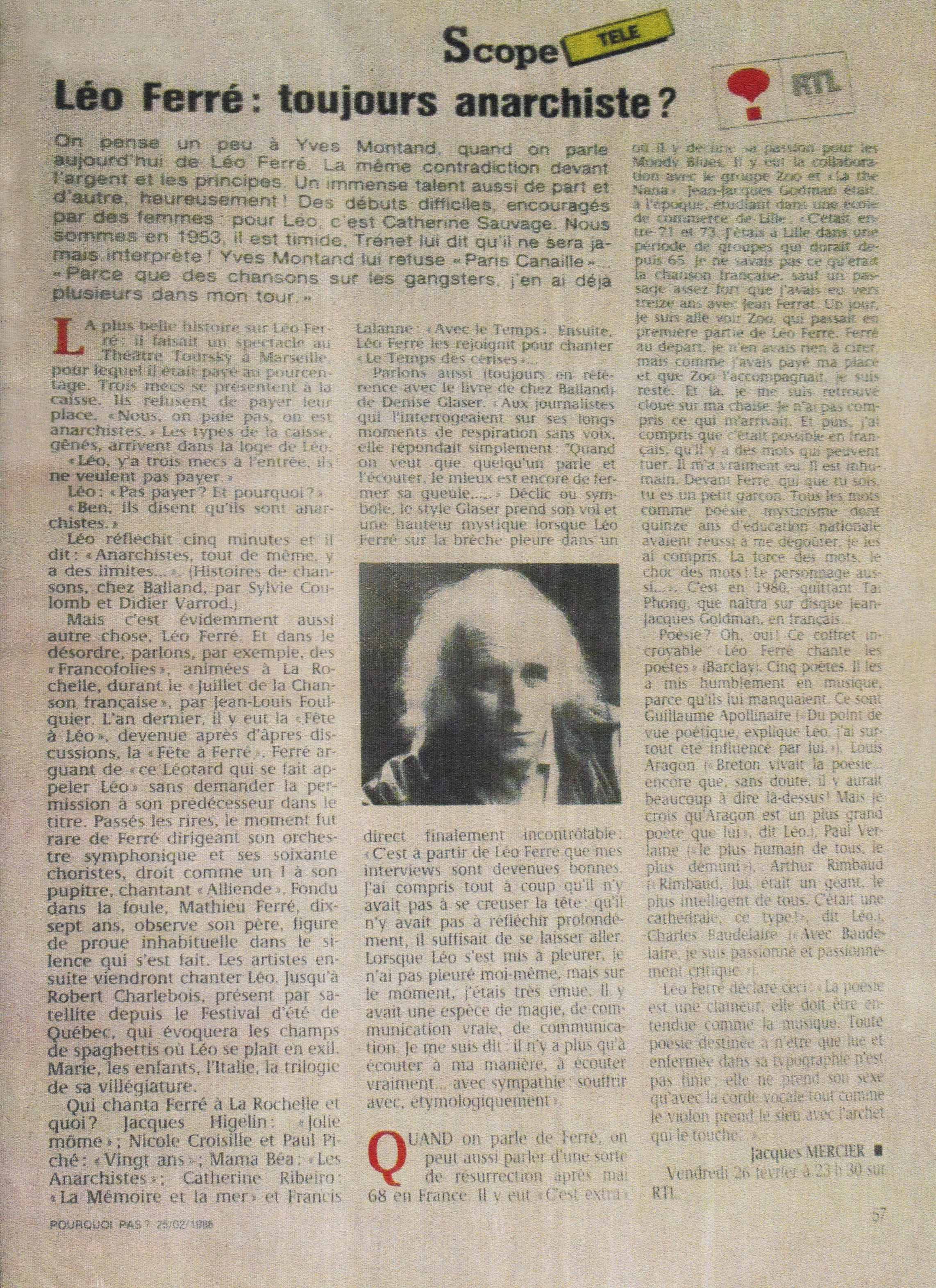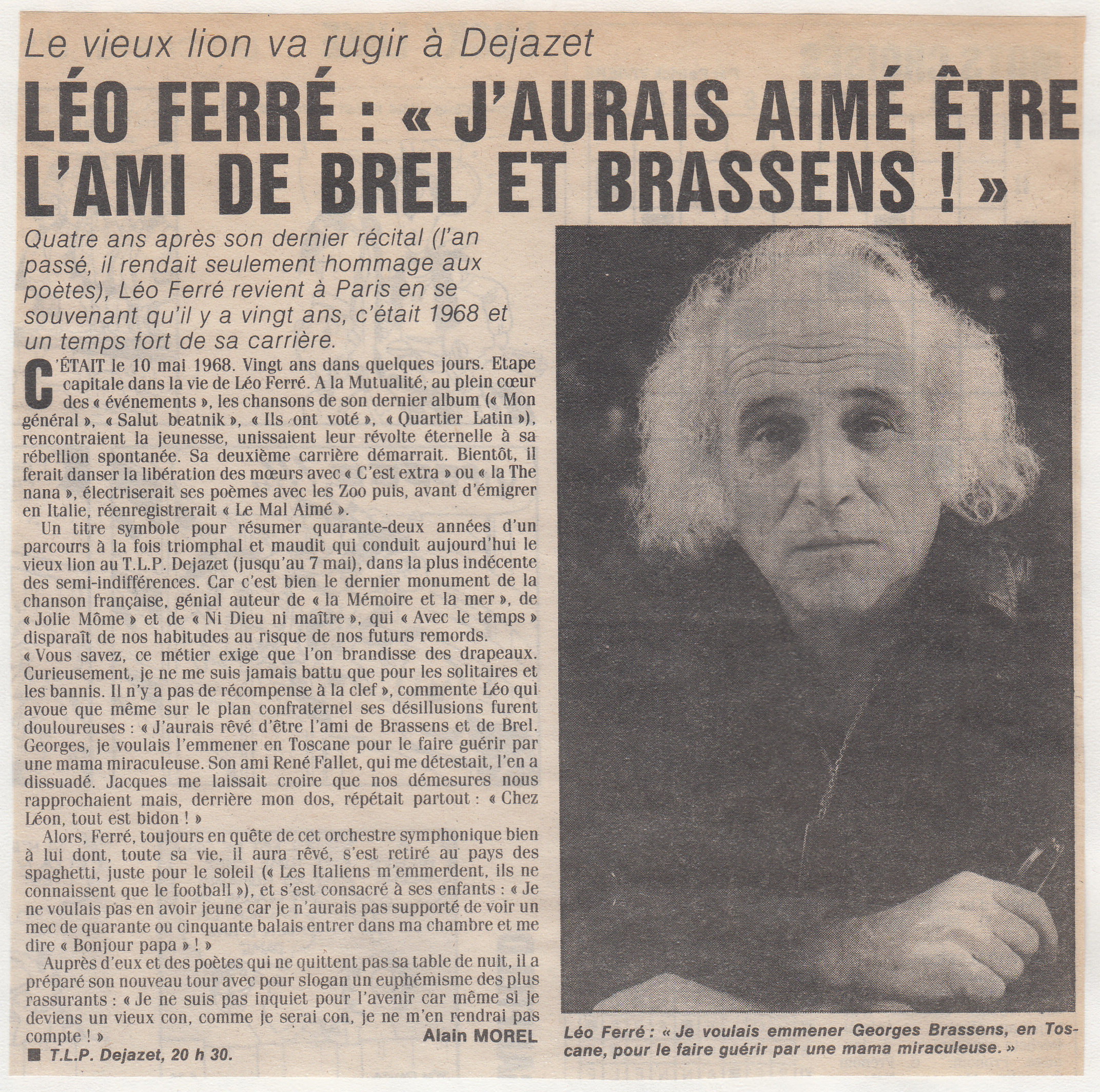 • Léo Ferré (samedi 4 février (1989), 20h30
