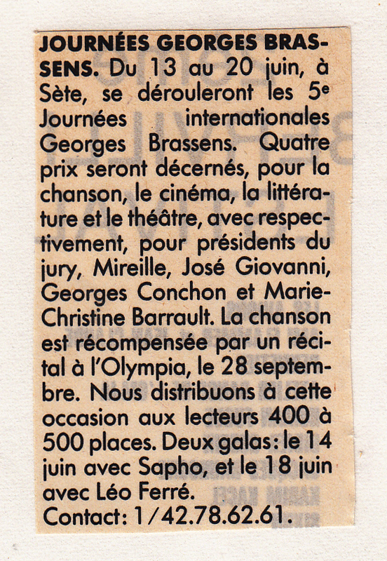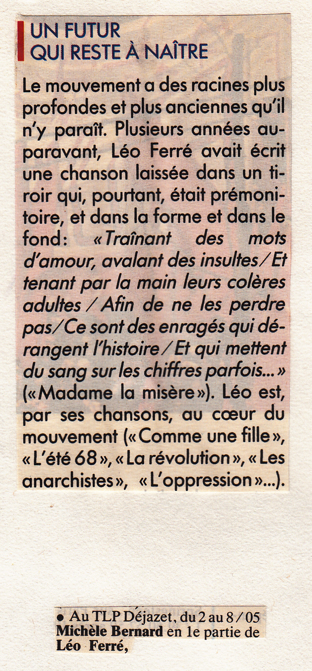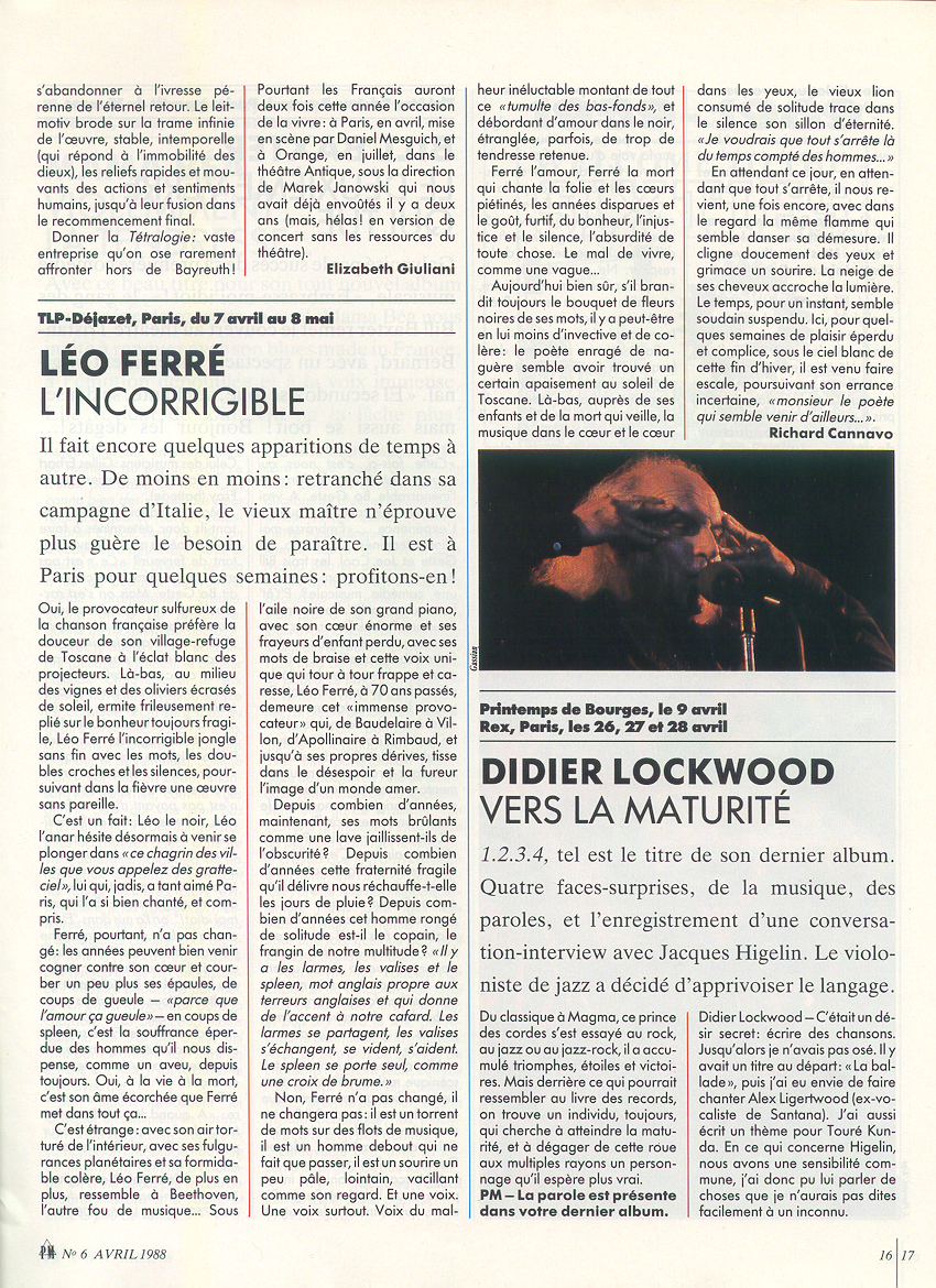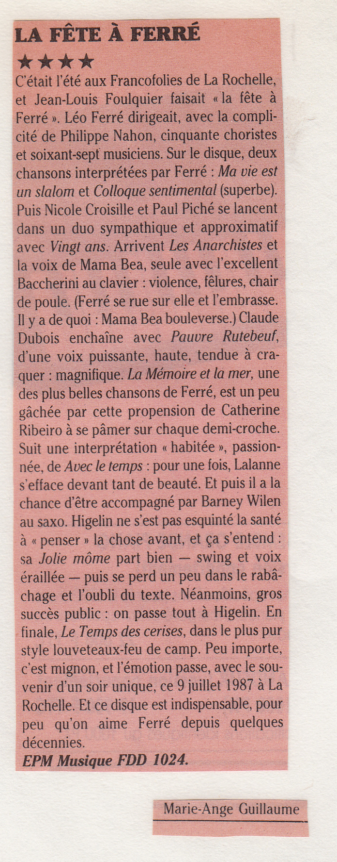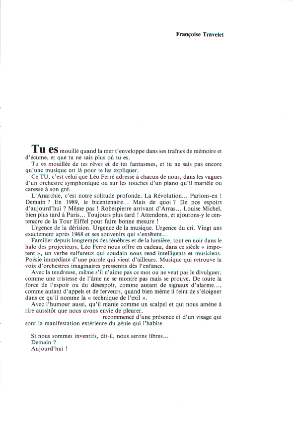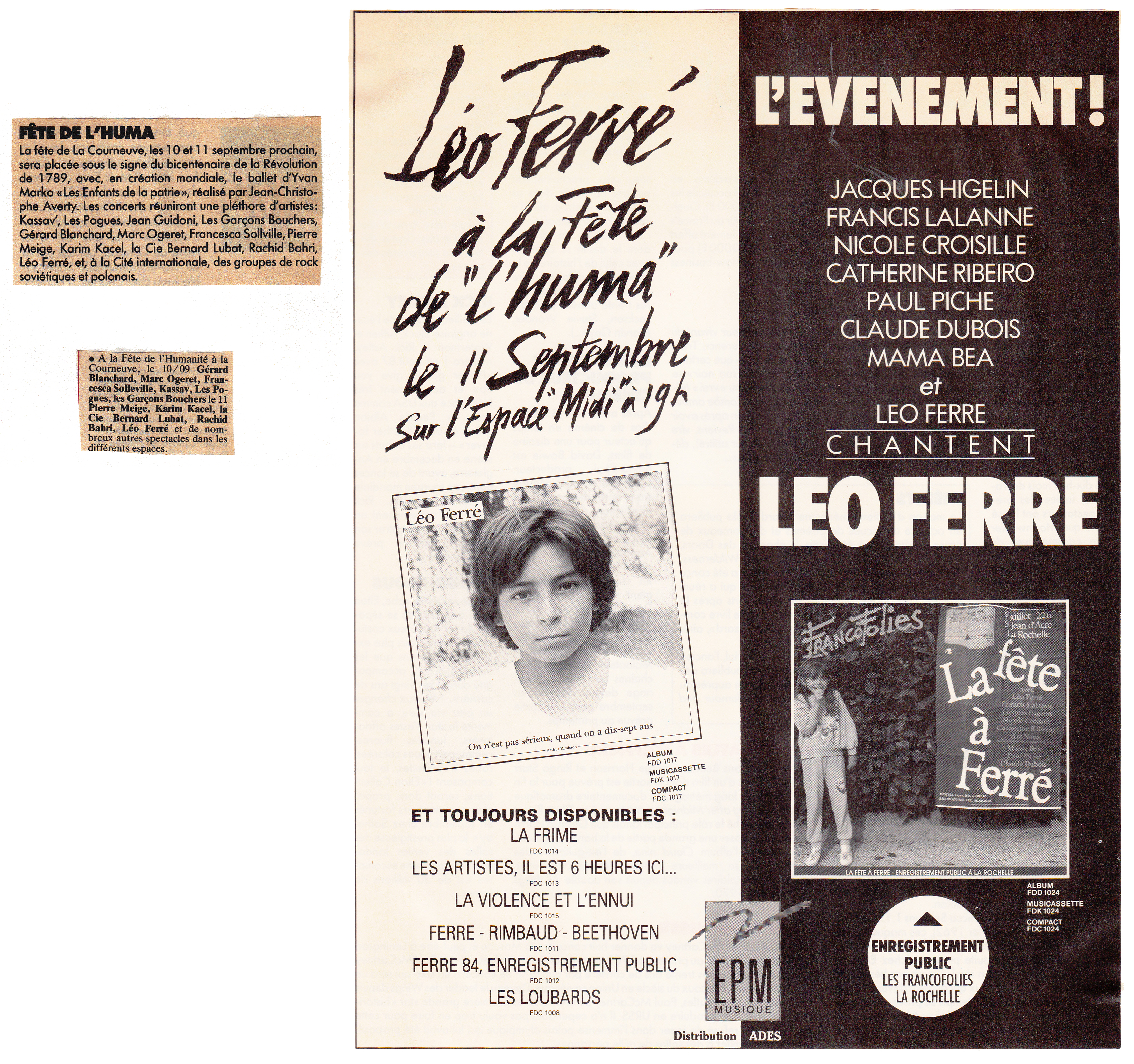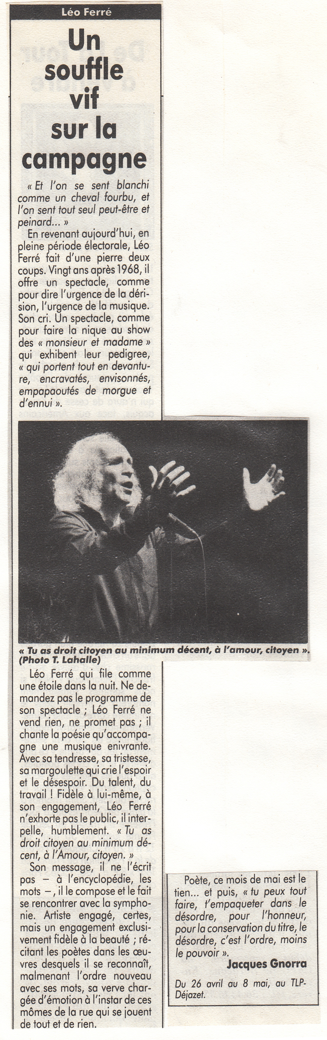 • Léo Ferré (samedi 4 février (1989), 20h30