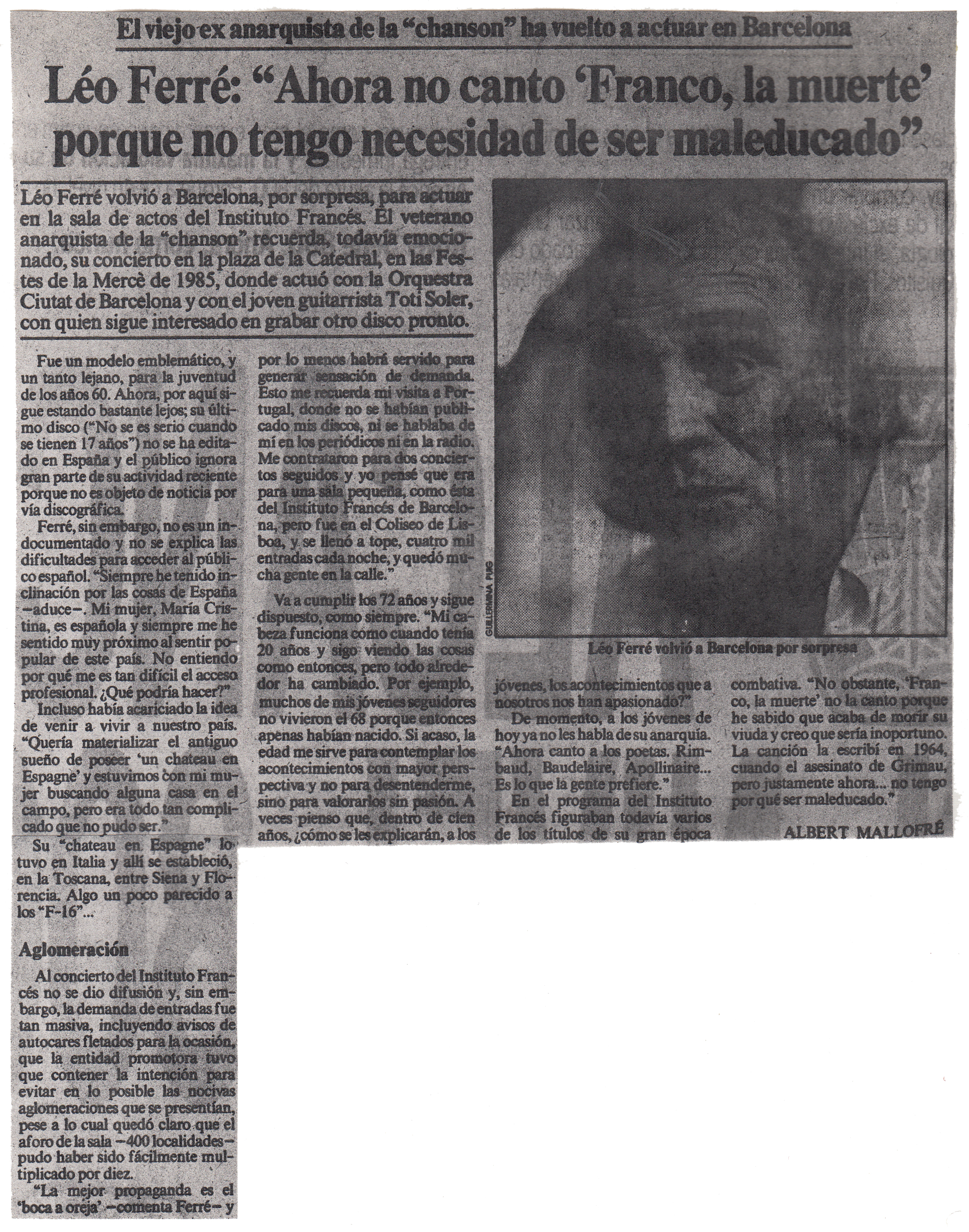 • Léo Ferré: "Ahora no canto 'Franco la muerte' porque no tengo necesidad de ser maleducado"