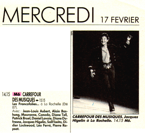 • M6 Carrefour des musiques - Les Francofolies... à La Rochelle (été 87)