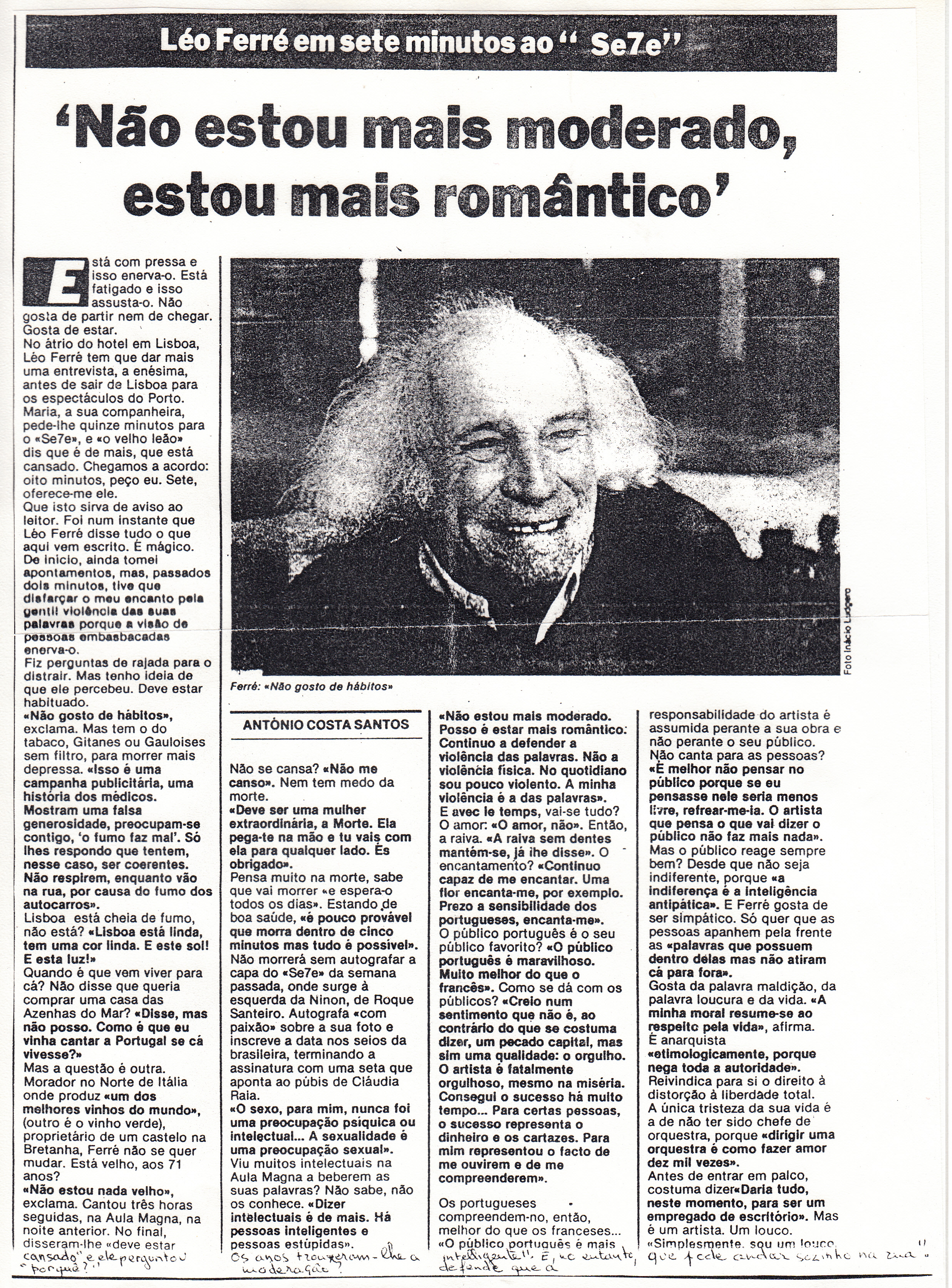 • Léo Ferré em sete minutos ao "Se7e" - 'Não estoumais moderado, estou mais romântico'