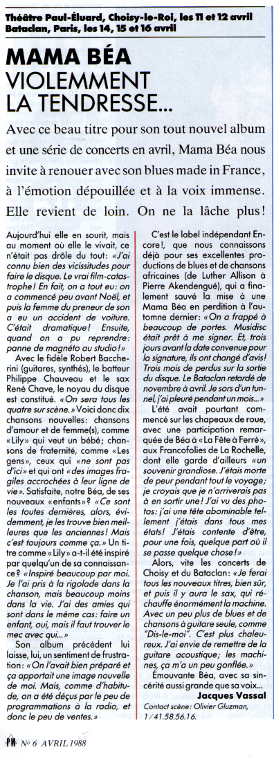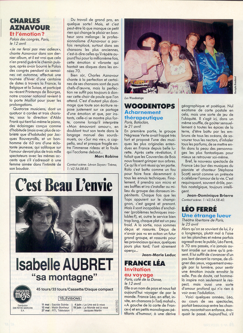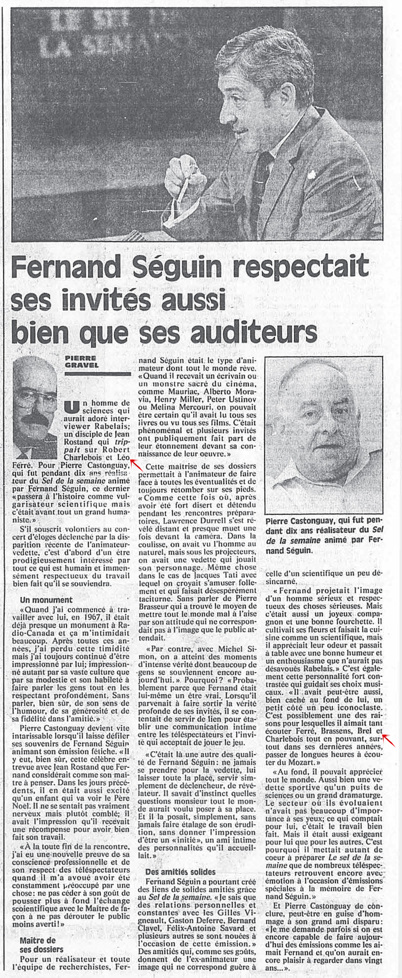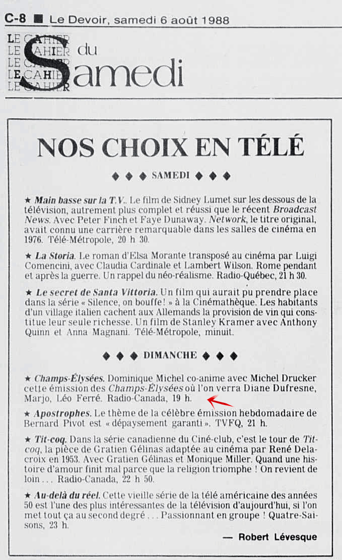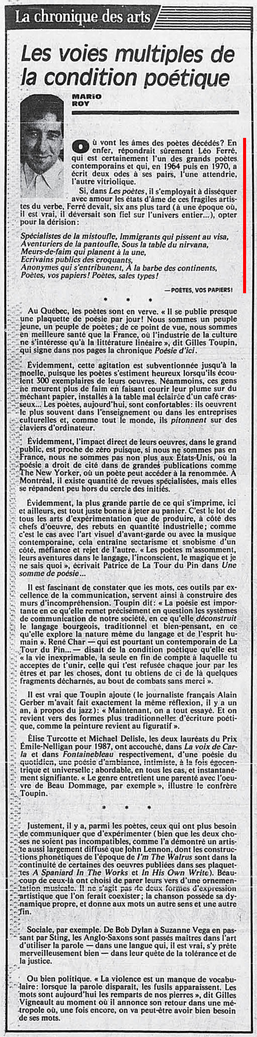 La Presse, 16 avril 1988, E. Arts et spectacles