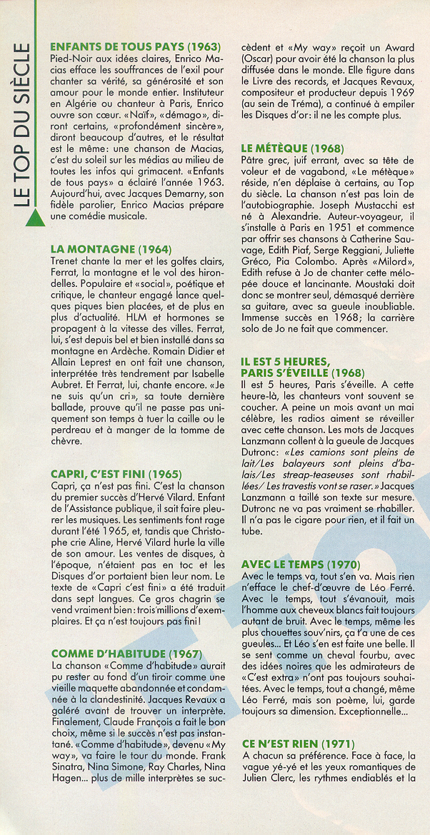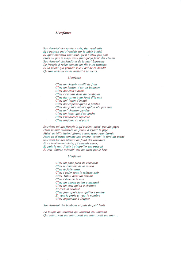 .../... Au lendemain de l'élection présidentielle française, Léo y réactive ses chansons libertaires d'avant 1970 pour un dernier baroud face à l'aveuglement de ses contemporains. Y sont également convoquées ses toutes premières chansons, qui resteront désormais à son tour de chant jusqu'à la fin. .../...