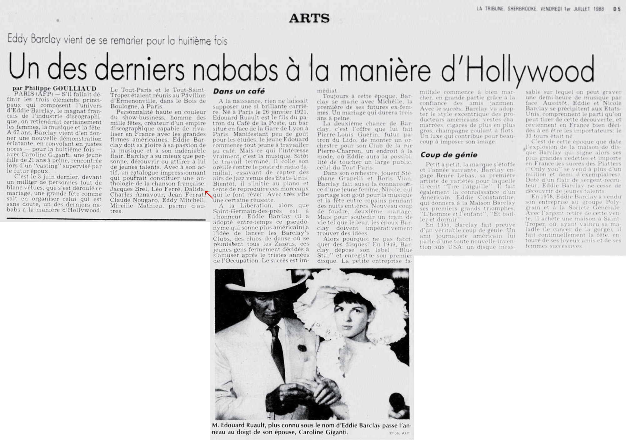 • Eddy Barclay vient de se remarier pour la huitième fois - Un des derniers nababs à la manière d'Hollywood