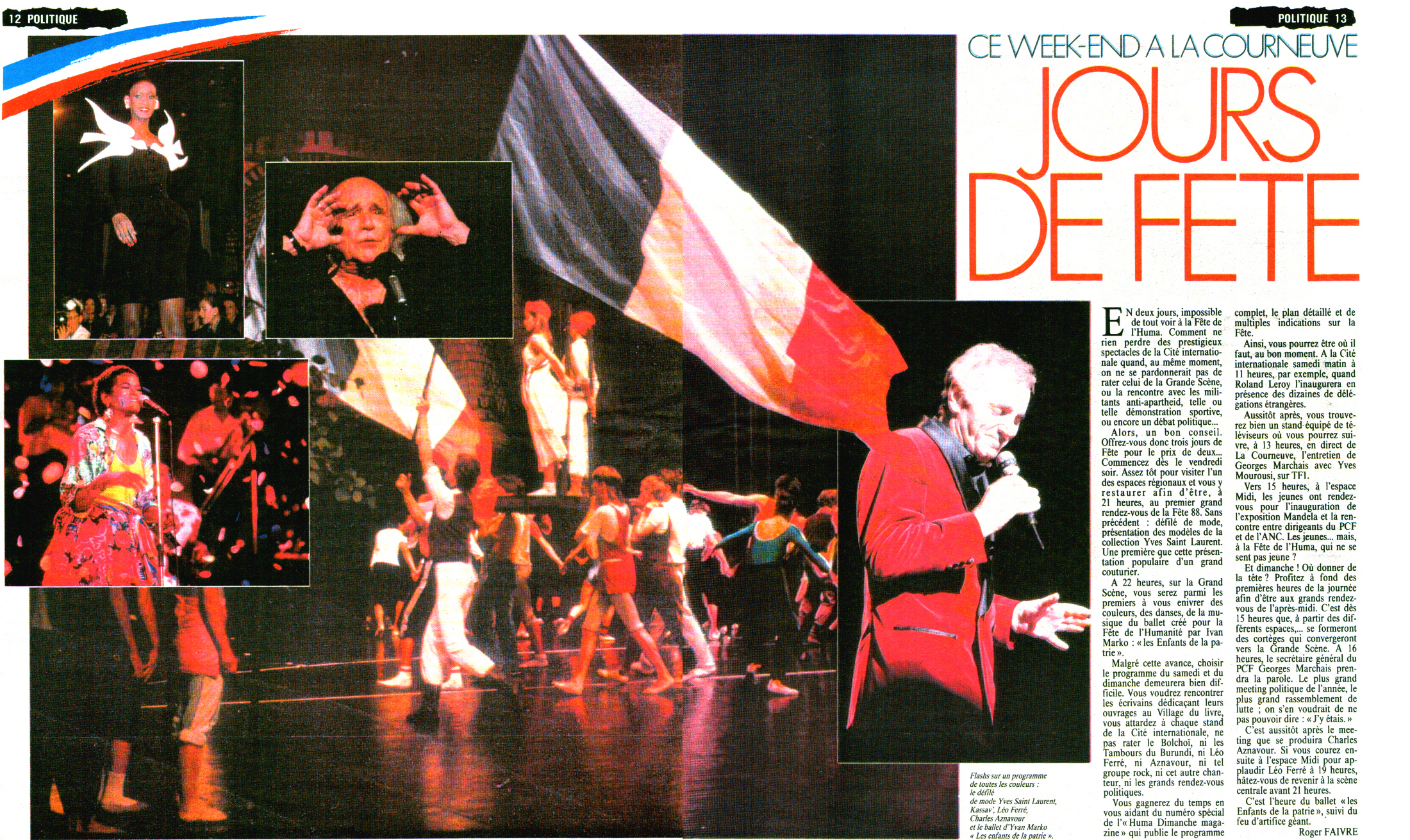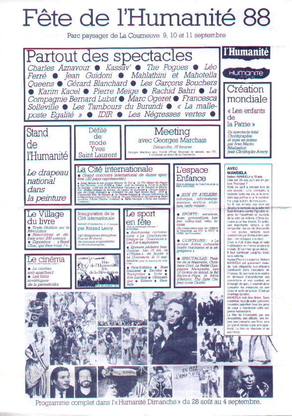 Programme de la Fête de l'Humanité du 09 au 11/09/1988