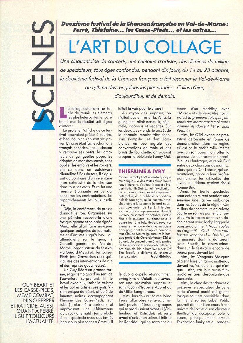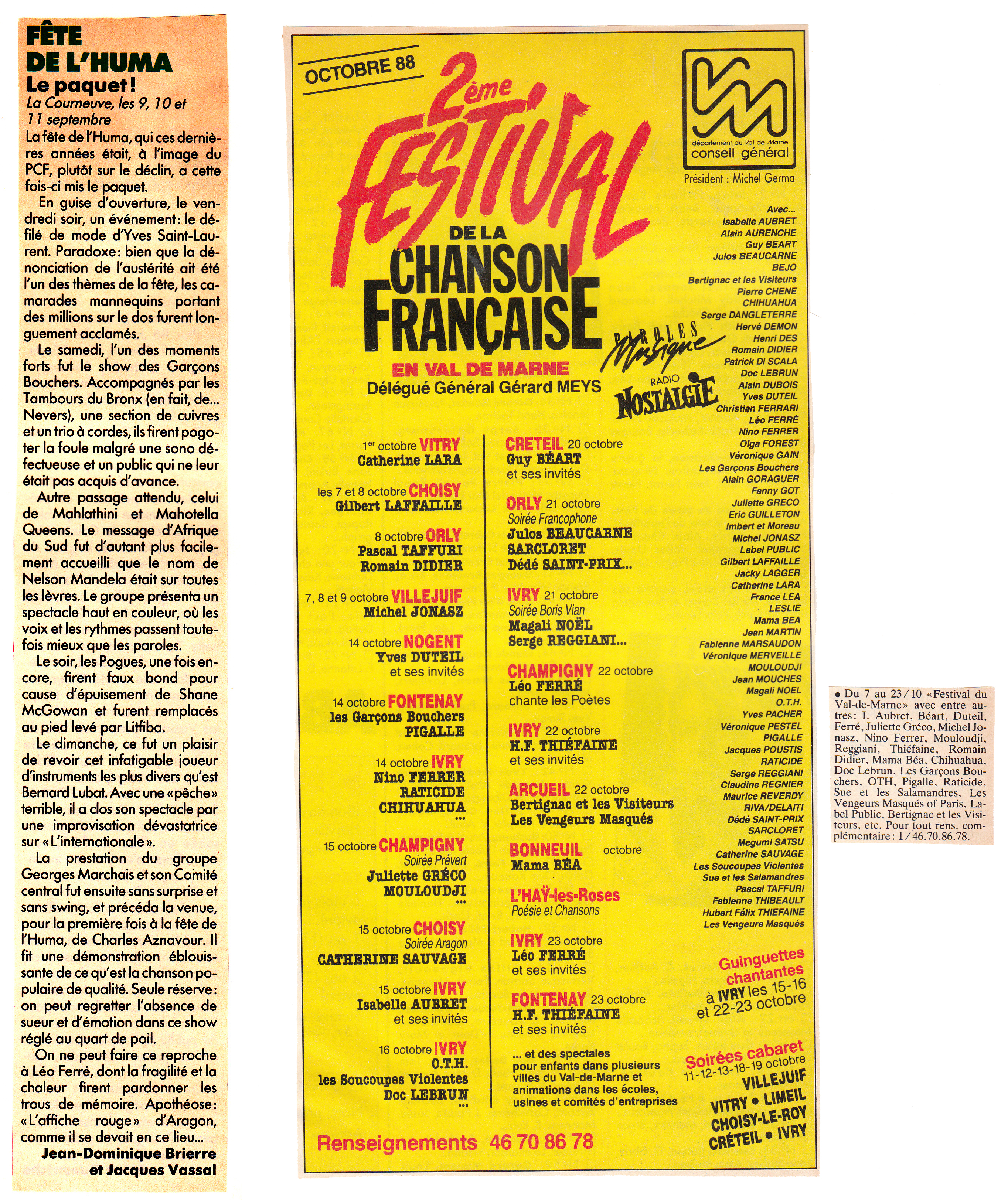 • 2ème festival de la chanson française en Val de Marne (Octobre 88)