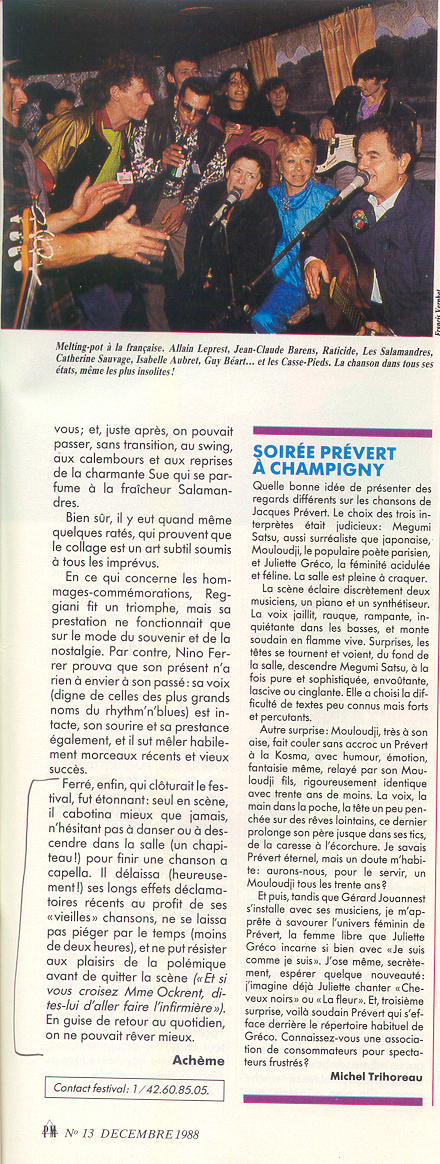 Paroles et Musique N°NS13, mensuel de Décembre 1988