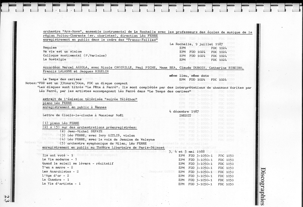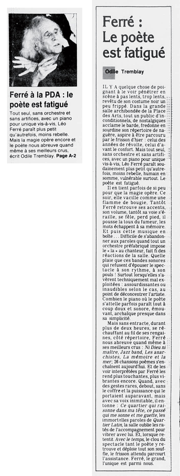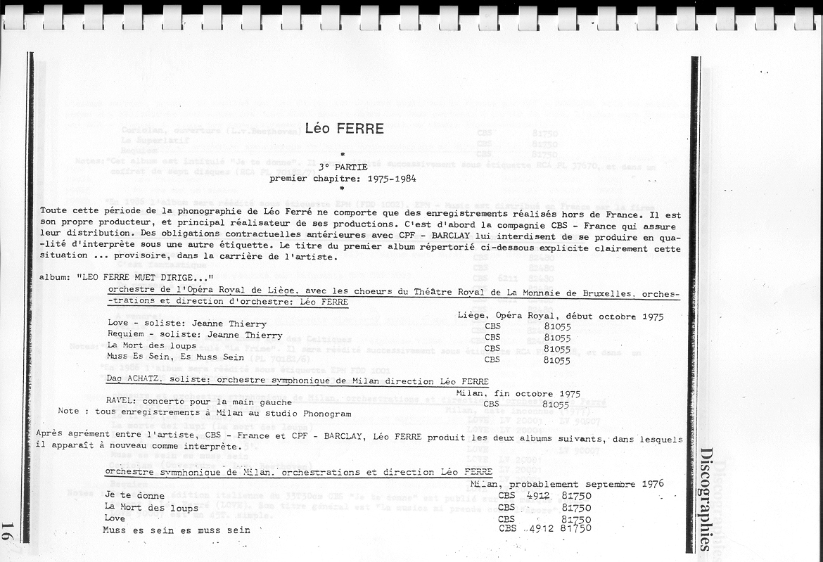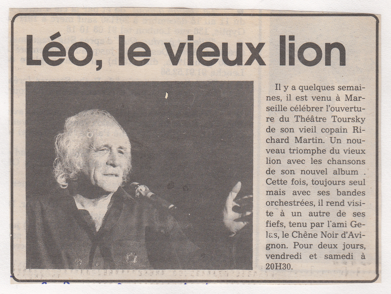 Ce concert est enregistré les 20,21,22 novembre et sortira chez EPM en double CD sous le titres «Alors, Léo…», de manière posthume en 1993.