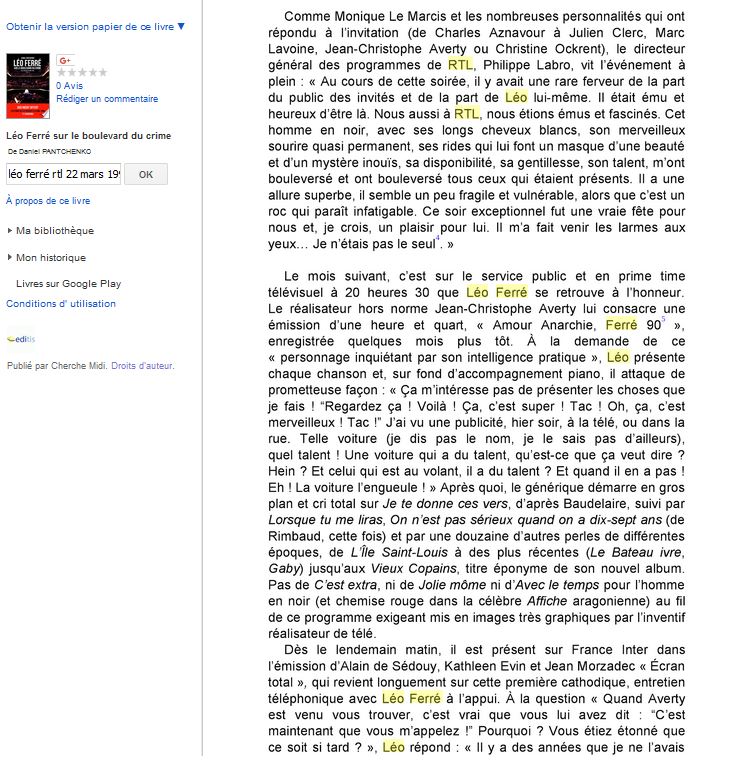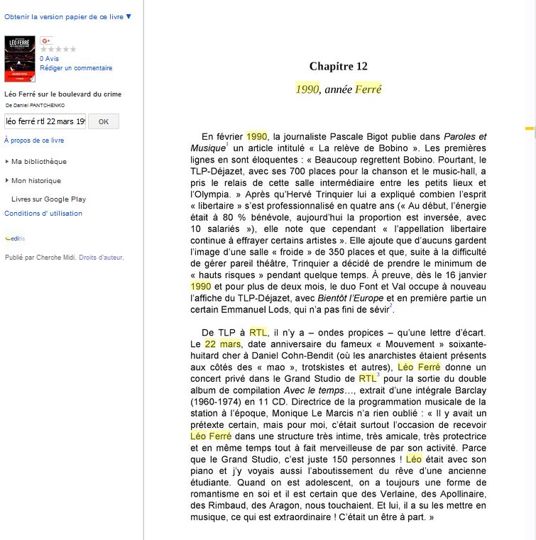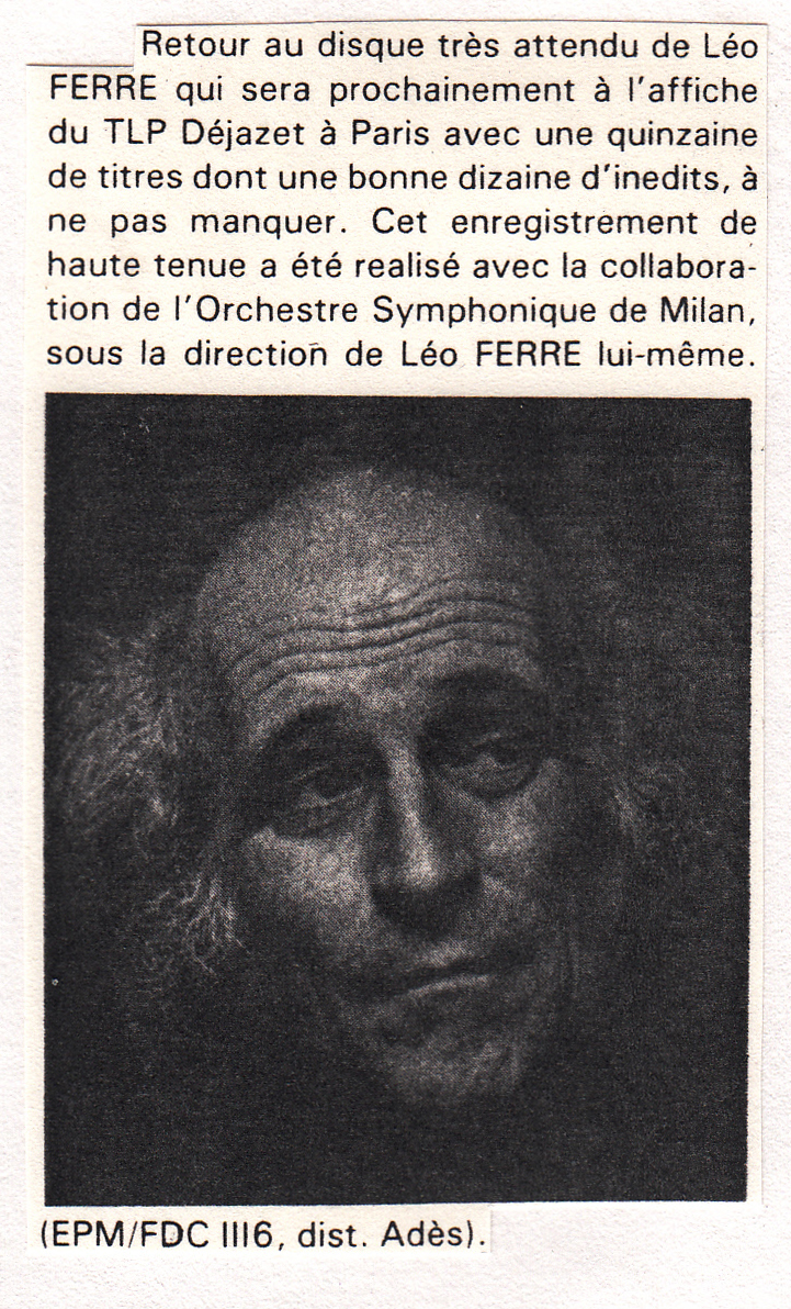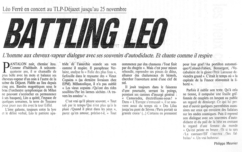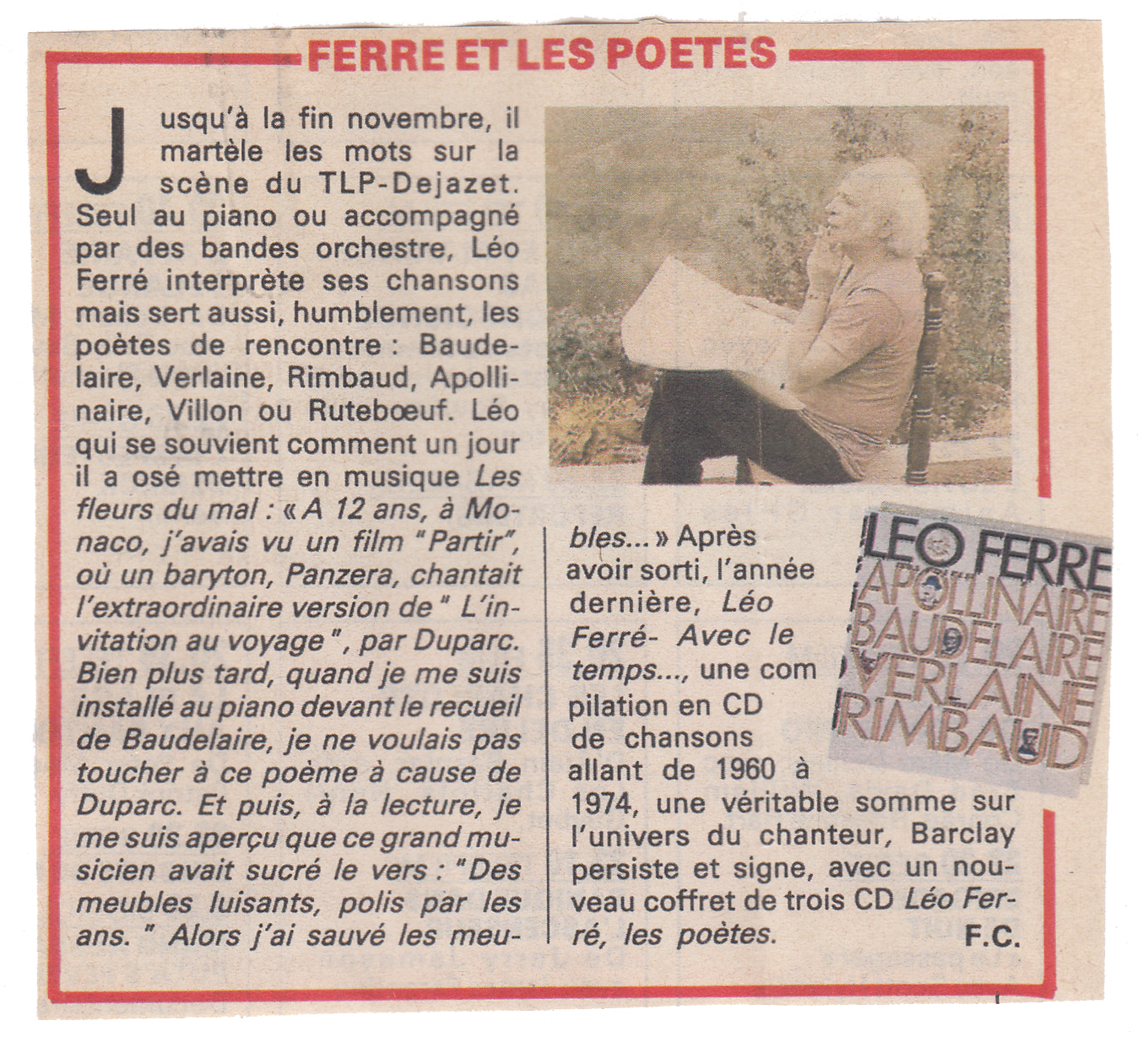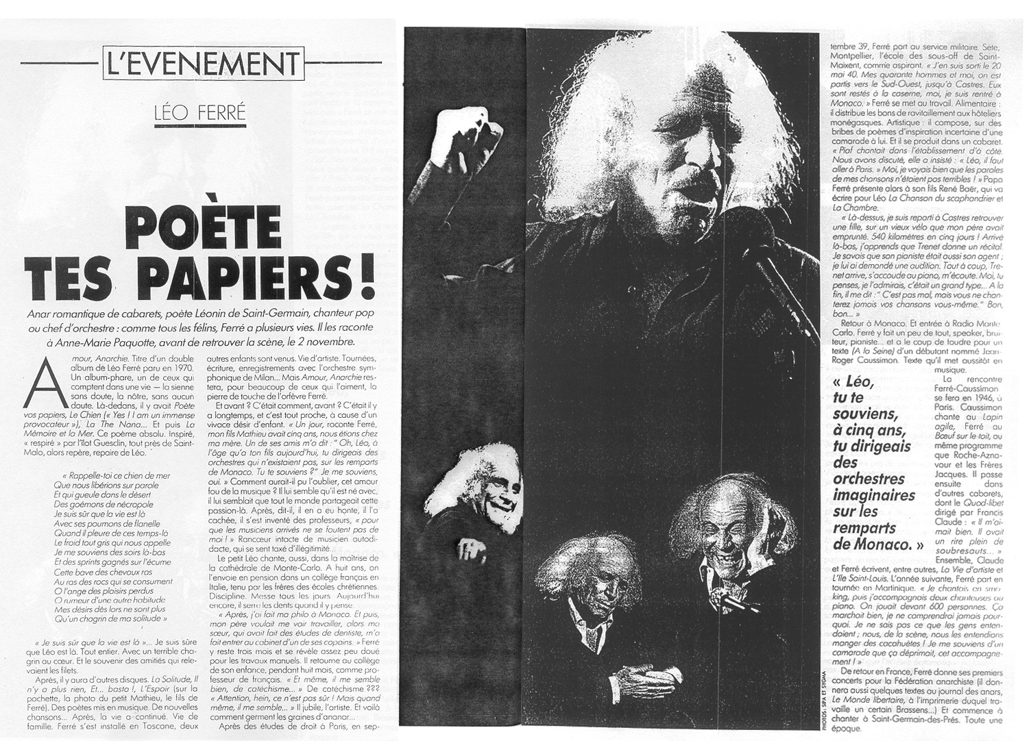 Extrait du livre de Daniel Pantchenko Léo Ferré sur le boulevard du crime