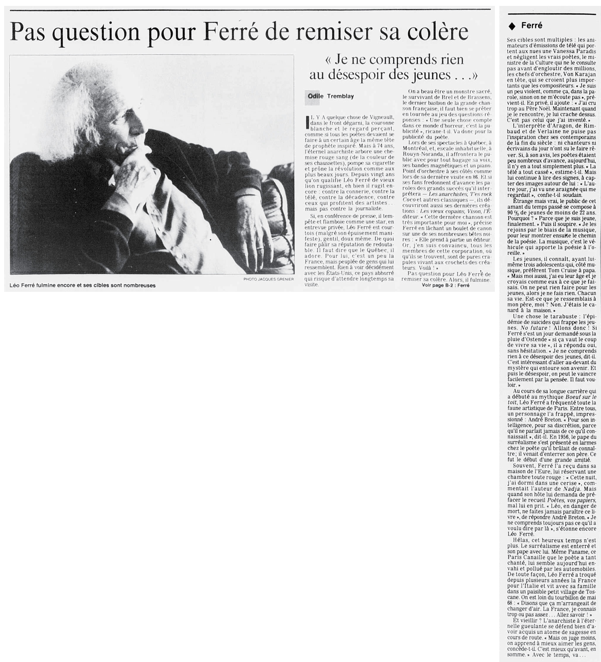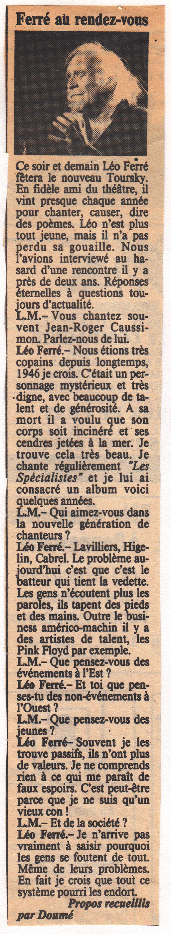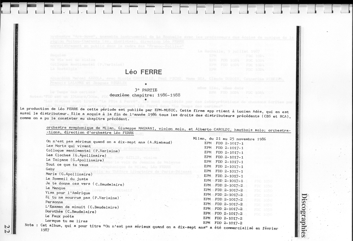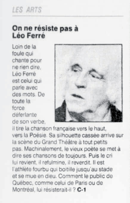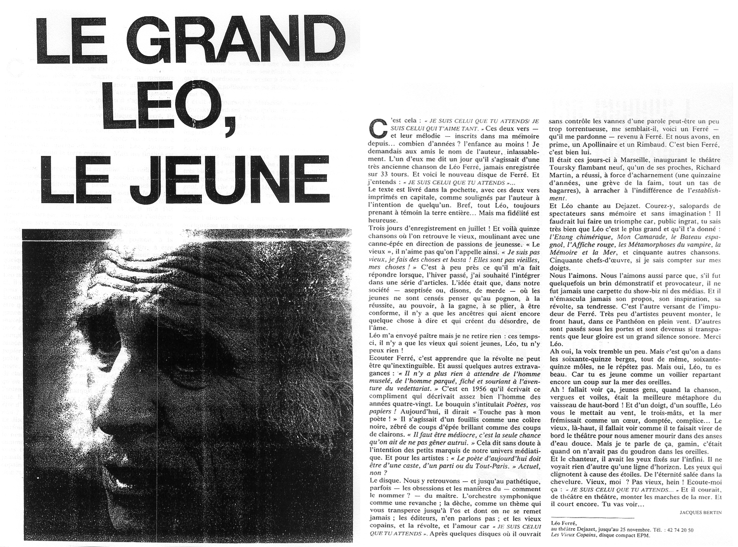 Extrait du livre de Daniel Pantchenko Léo Ferré sur le boulevard du crime