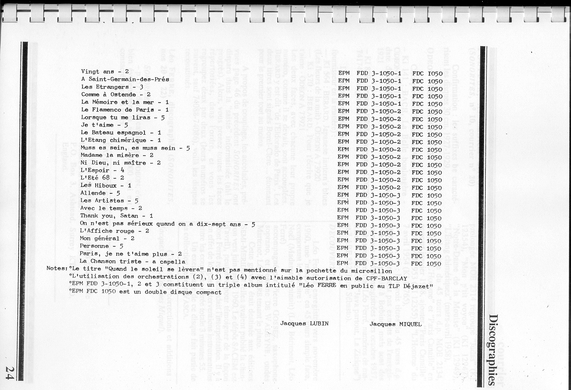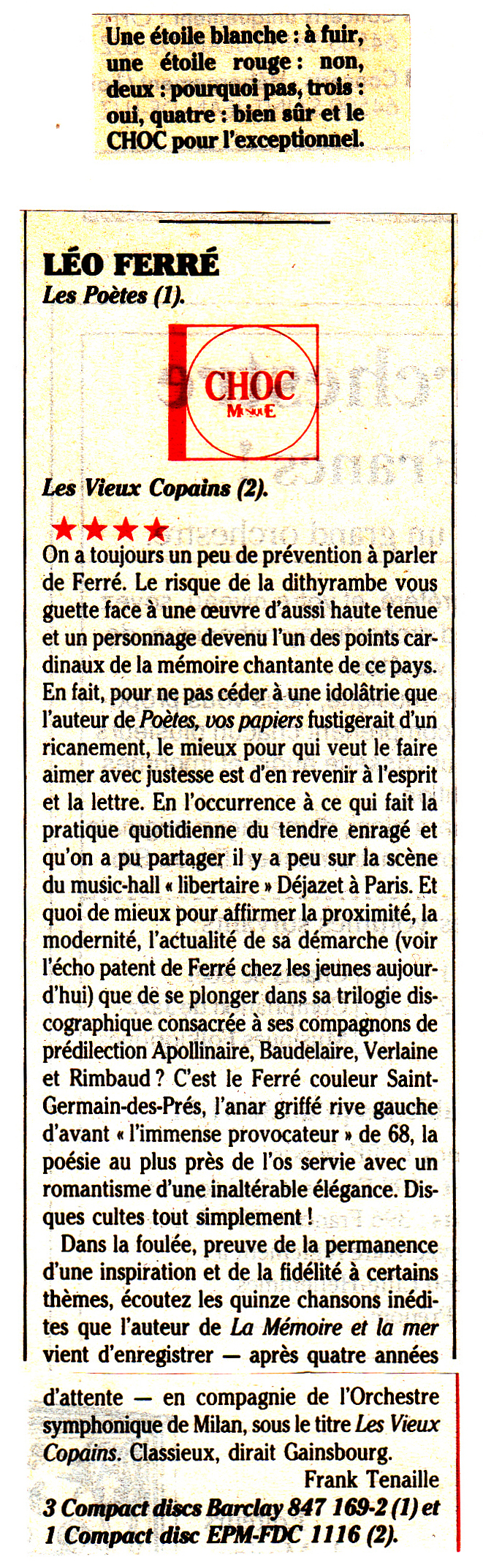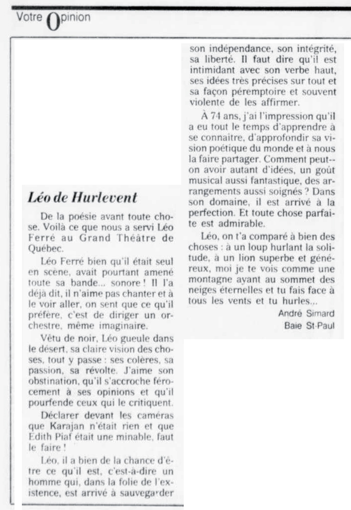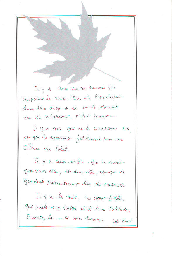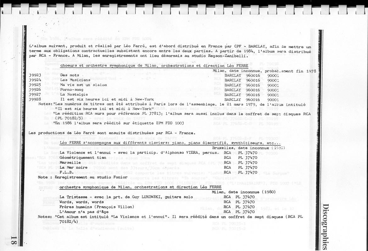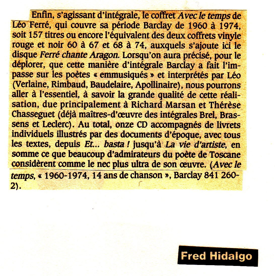 Extrait du livre de Daniel Pantchenko Léo Ferré sur le boulevard du crime