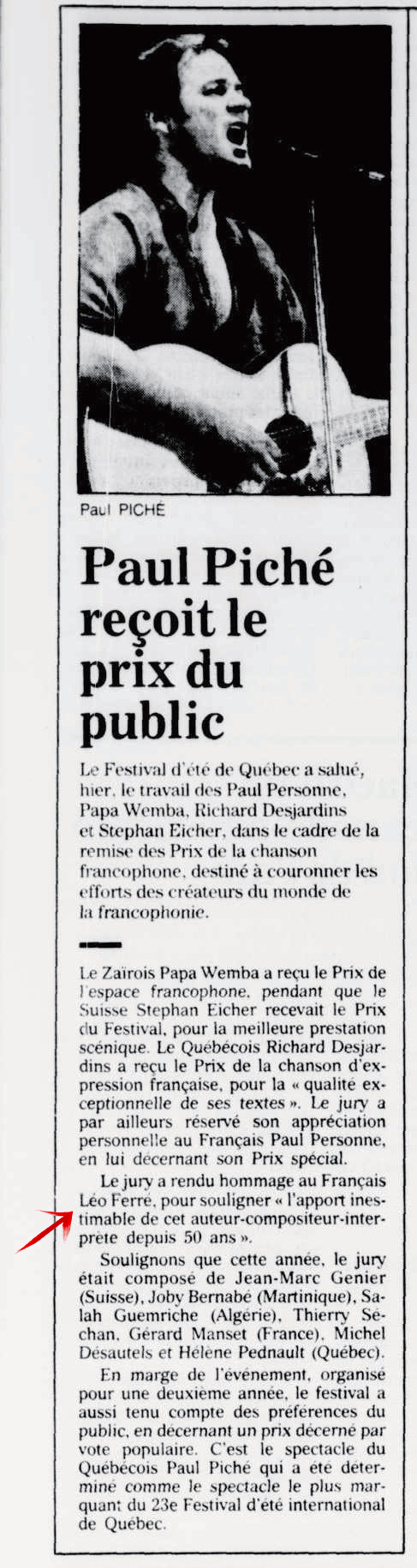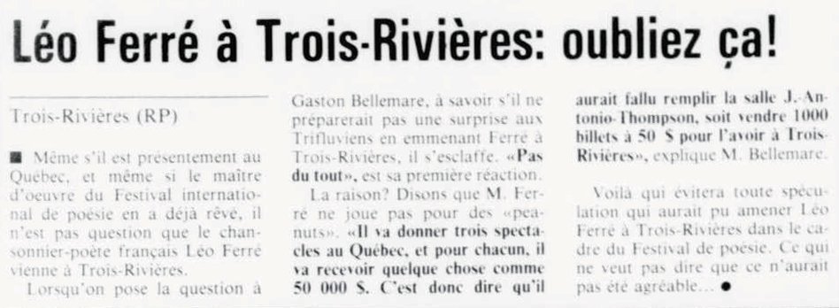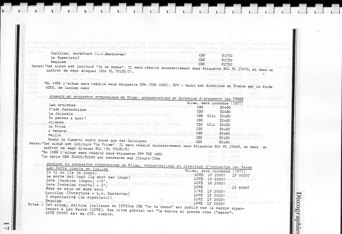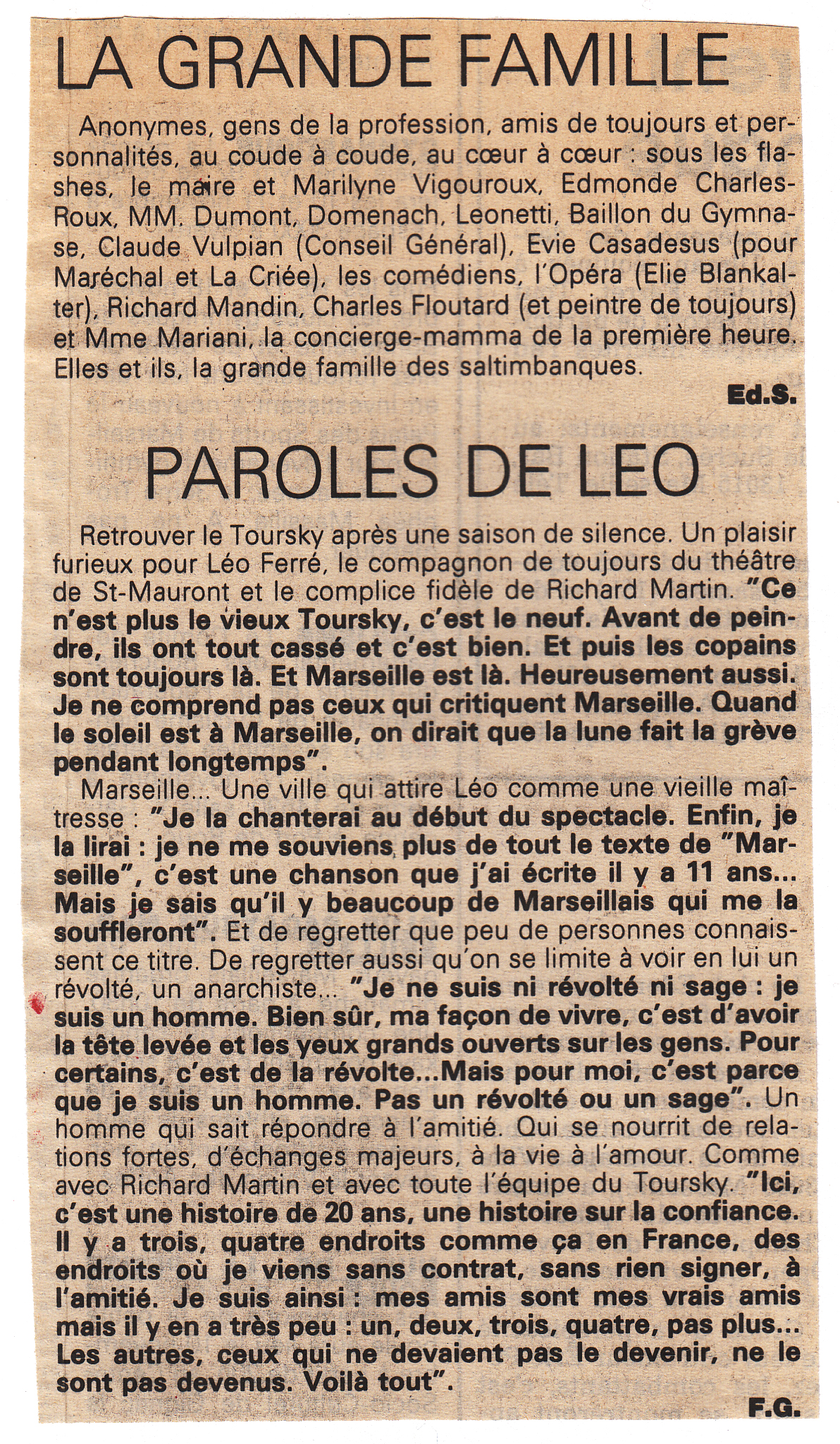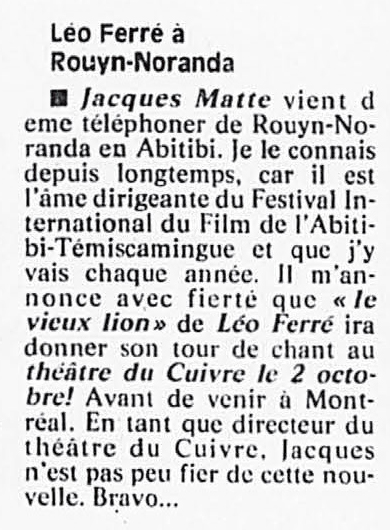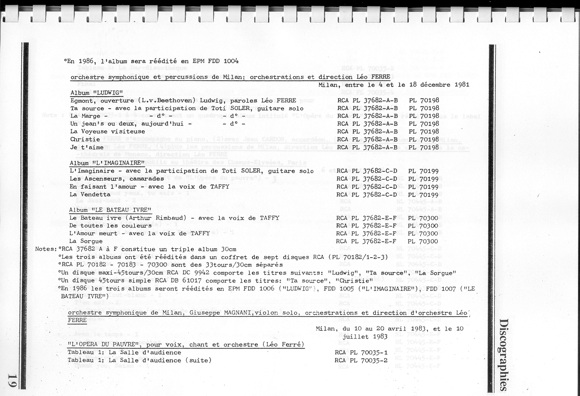 Extrait du livre de Daniel Pantchenko Léo Ferré sur le boulevard du crime