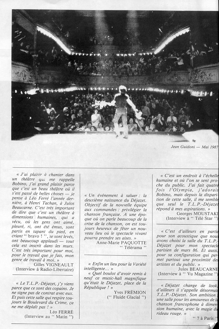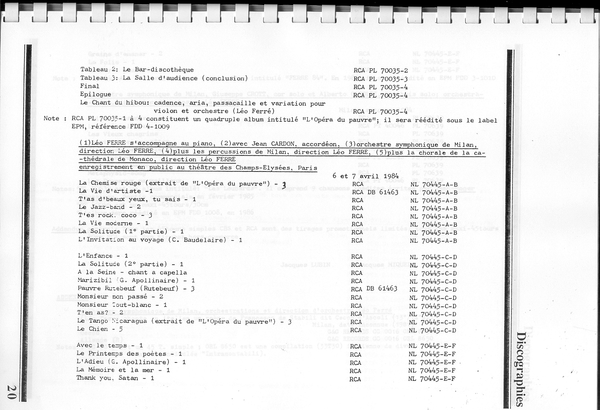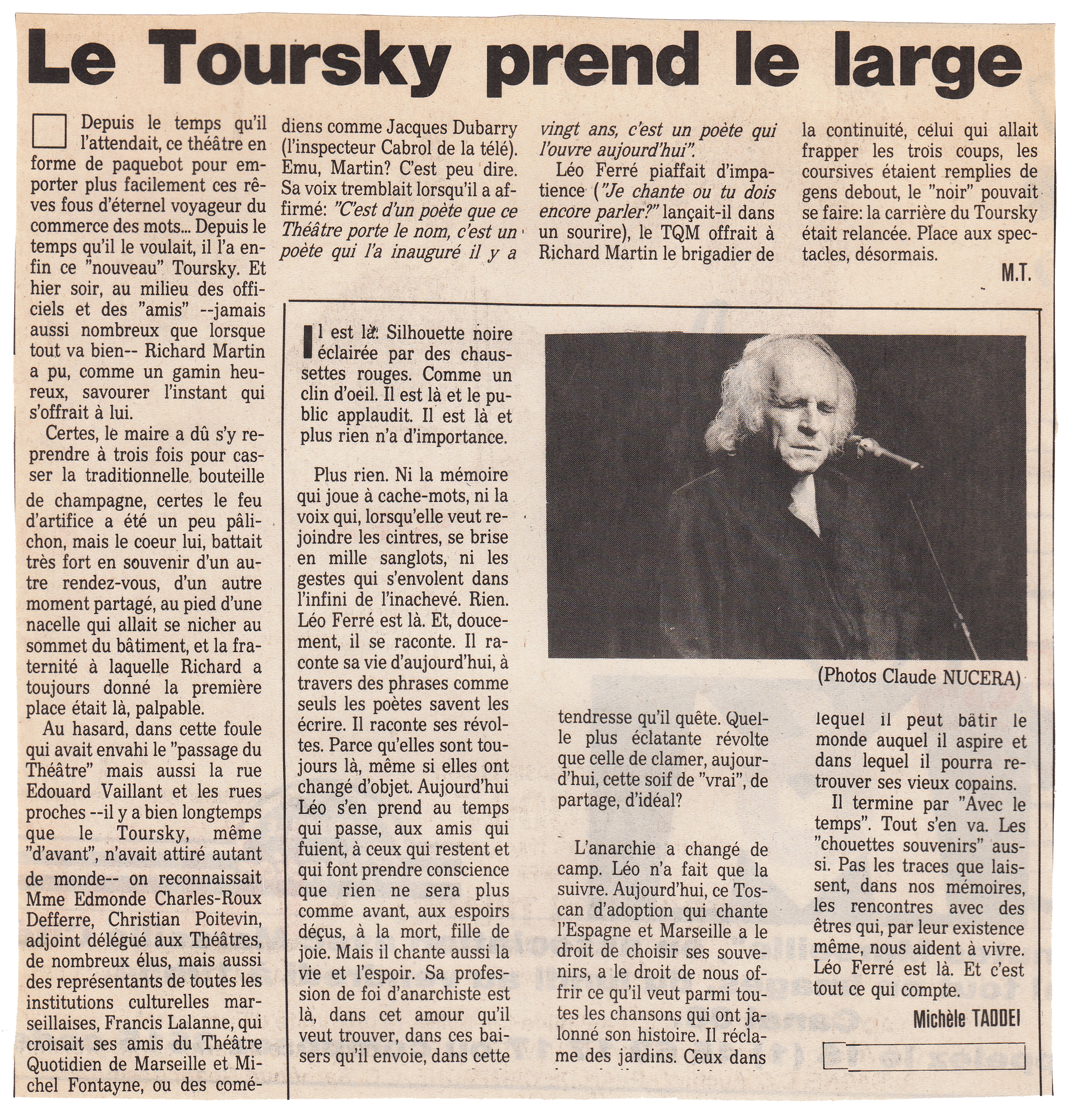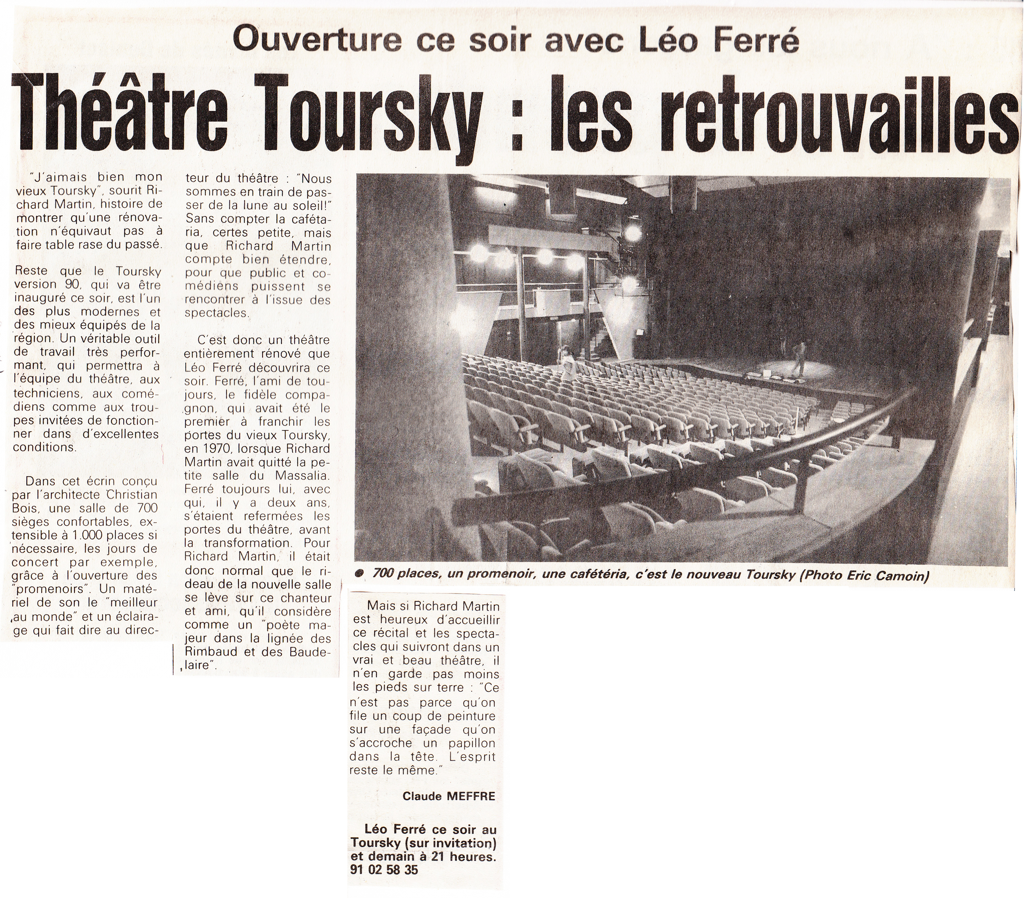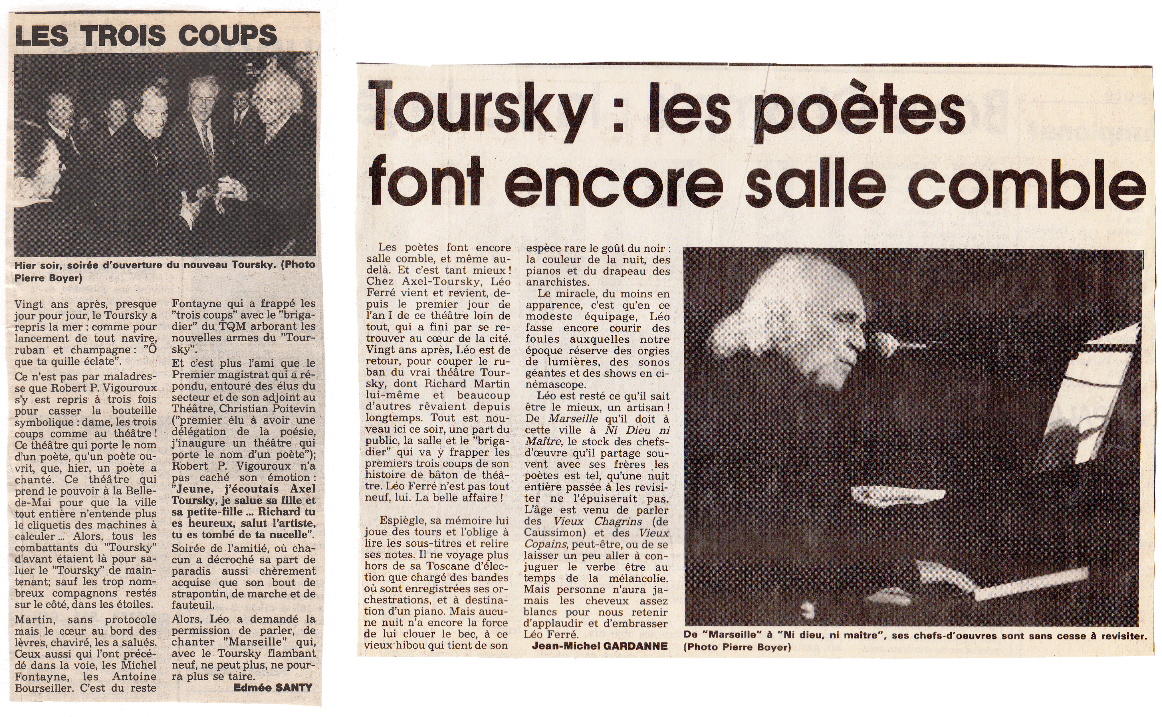 02 au 25.11 : Programme regroupant le récital de Léo Ferré et L'Opéra du pauvre (nouvelle version) par le Zygom Théâtre (mise en scène de Frank Ramon) du 27 novembre au 9 décembre 1990