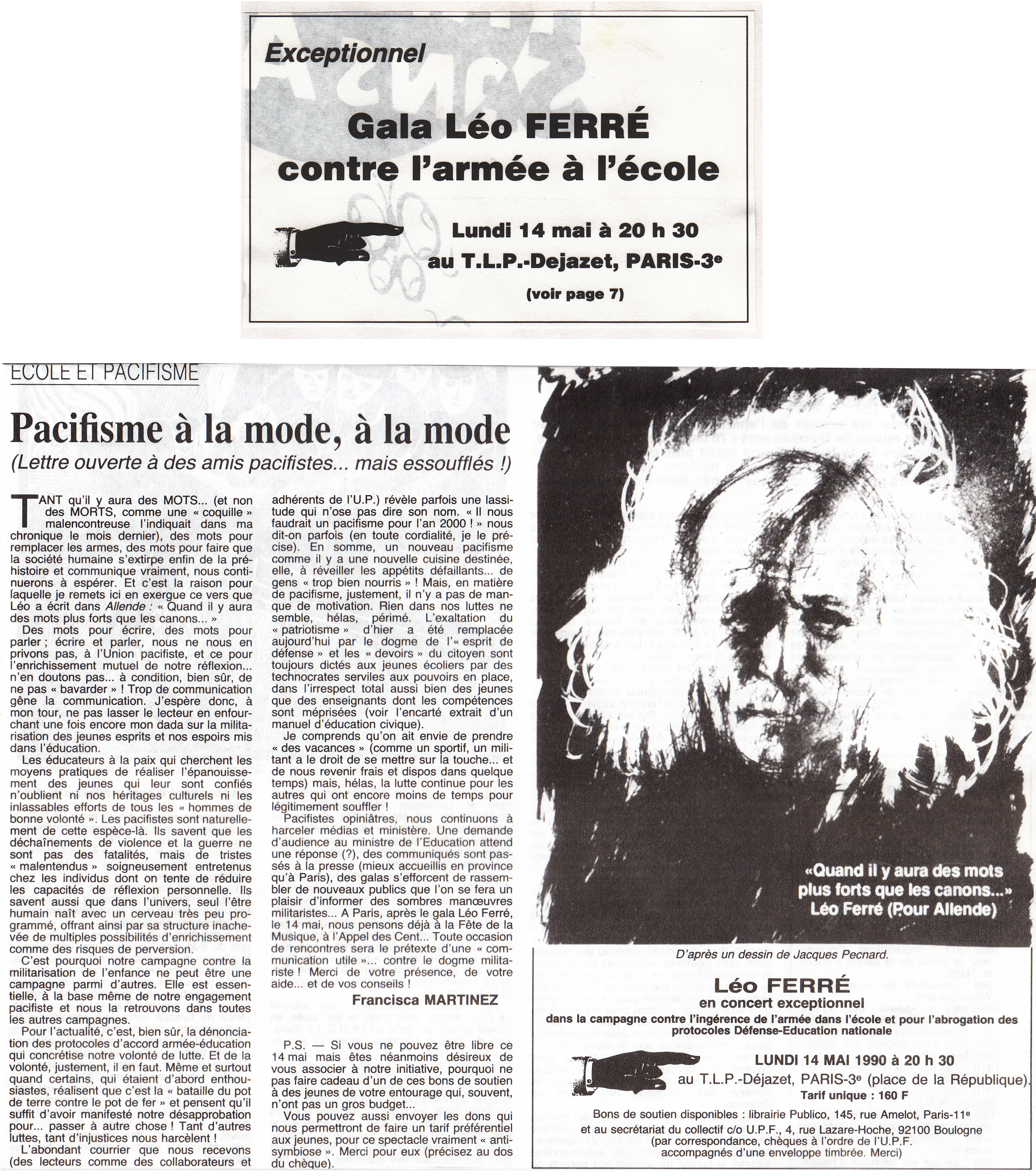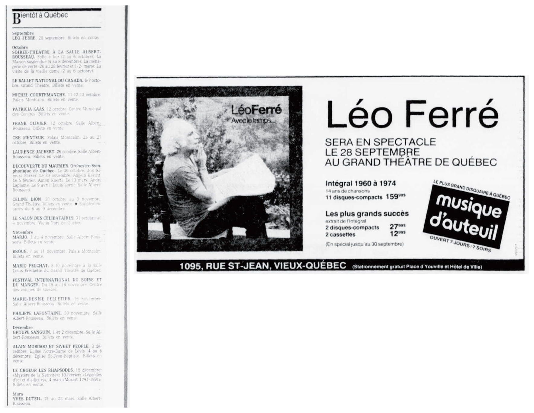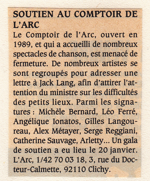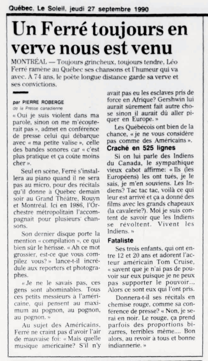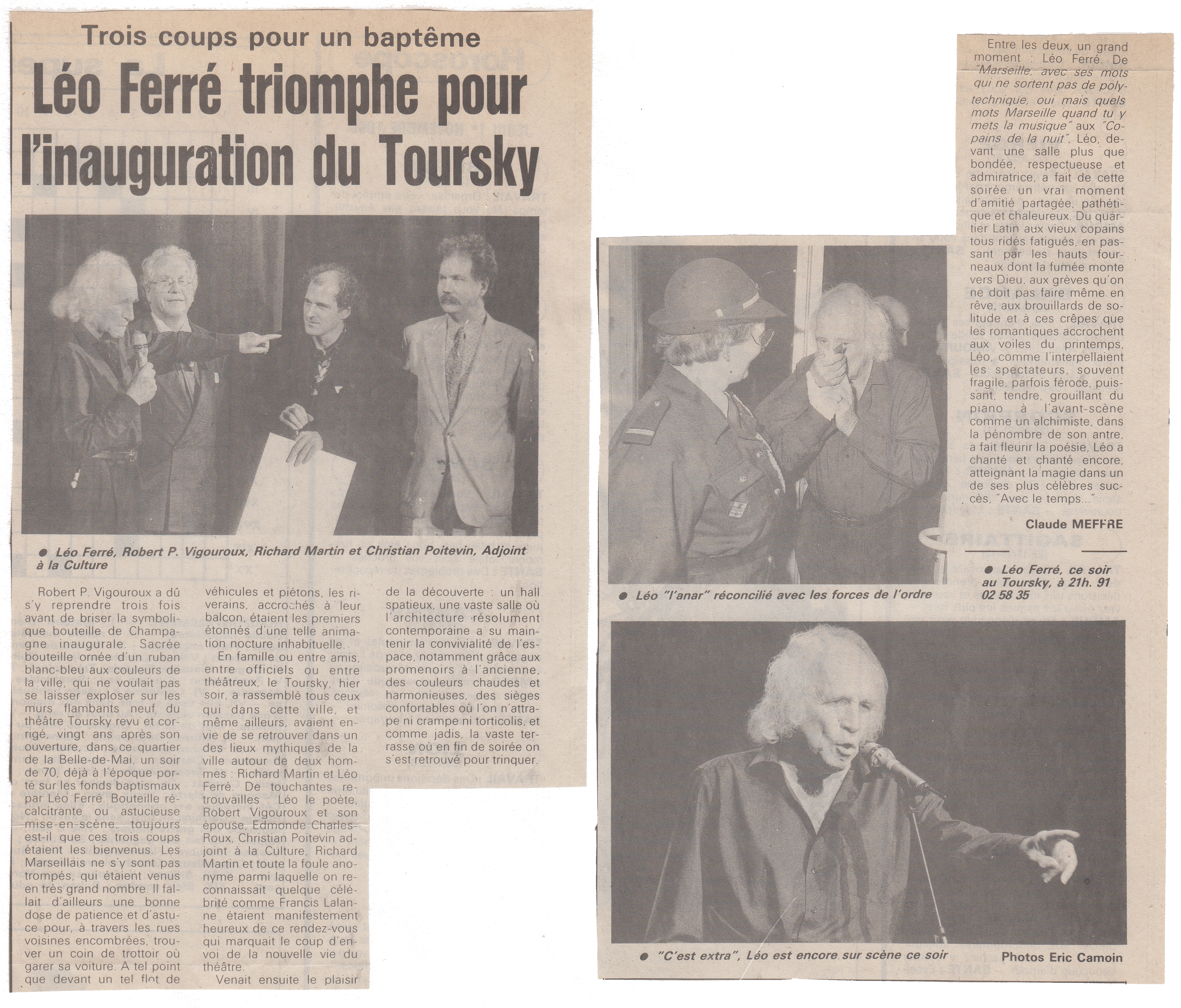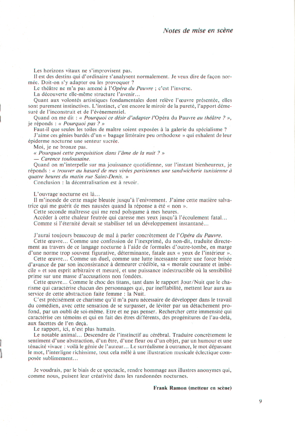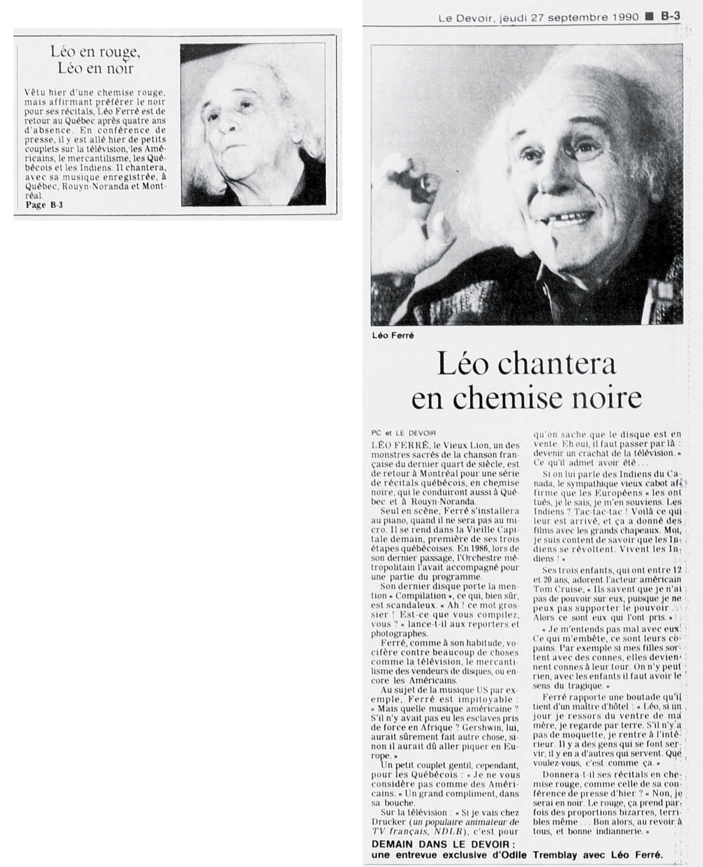 02 au 25.11 : Programme regroupant le récital de Léo Ferré et L'Opéra du pauvre (nouvelle version) par le Zygom Théâtre (mise en scène de Frank Ramon) du 27 novembre au 9 décembre 1990