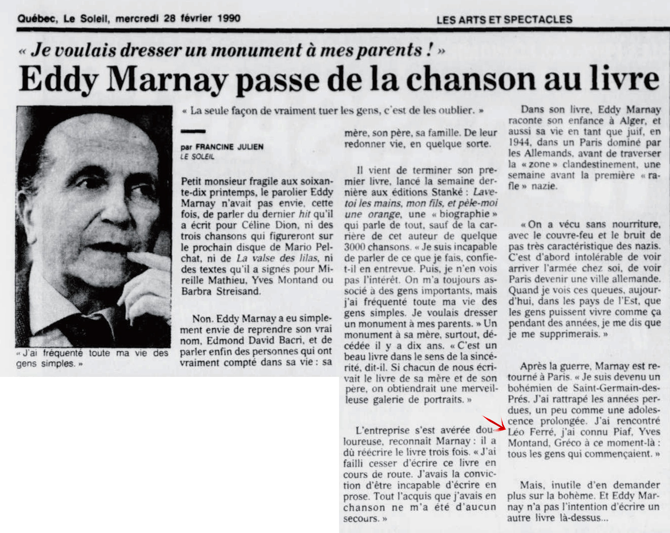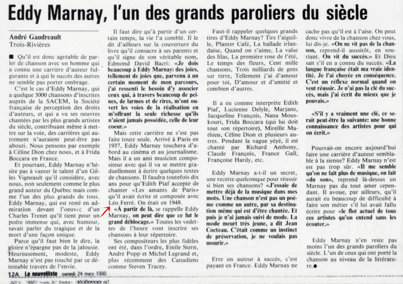 • Eddy Marnay, l'un des grands paroliers du siècle
