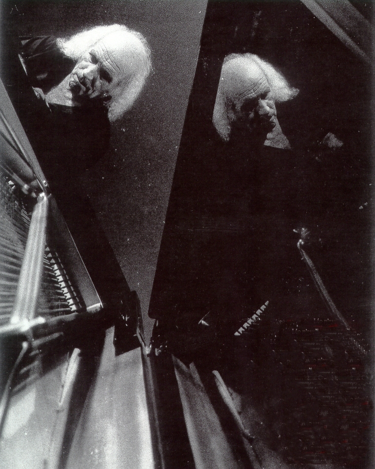 Léo Ferré le 9 novembre 1990. Au fond l'équipe de reportage-Daniel Ravelli