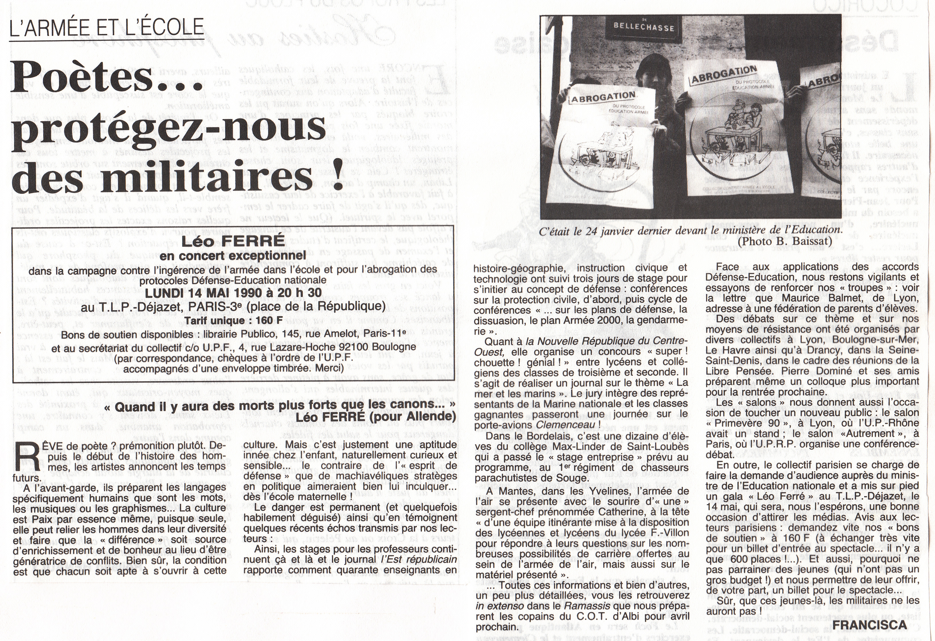 En 1990, souvenons-nous, c'est la guerre du Koweit, Saddam Hussein est l'ennemi de George Bush père avant d'être onze ans plus tard celui de son fils. 1990, c'est en Afrique du Sud, la fin de l'apartheid. En France, le président Mitterrand a commencé deux ans plus tôt son second septennat, 100 000 lycéens manifestent à Paris et Léo Ferré a 74 ans.