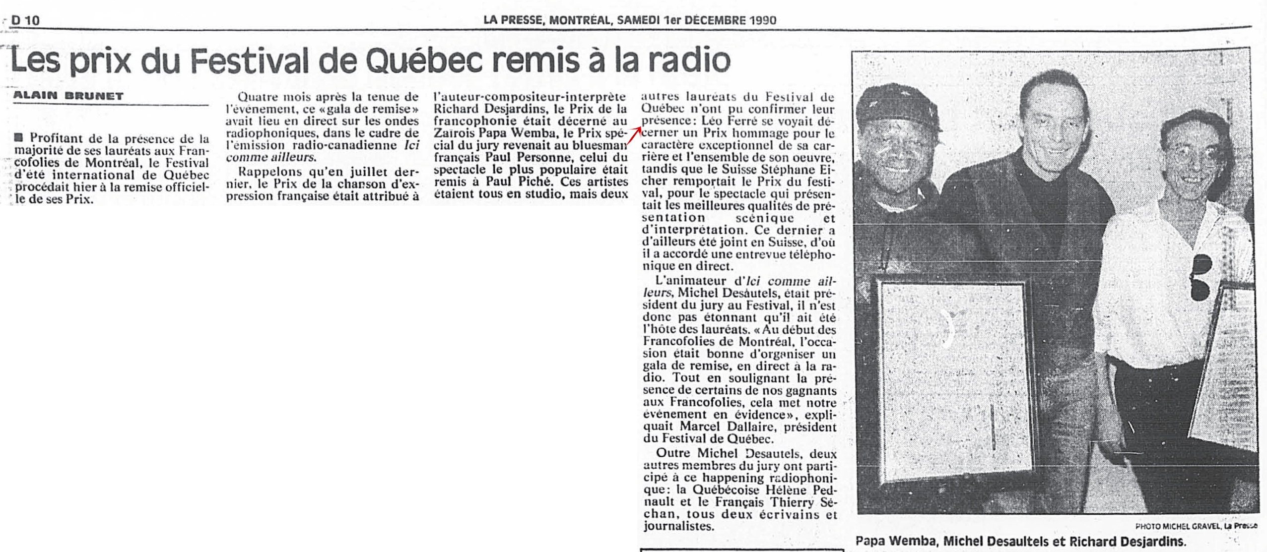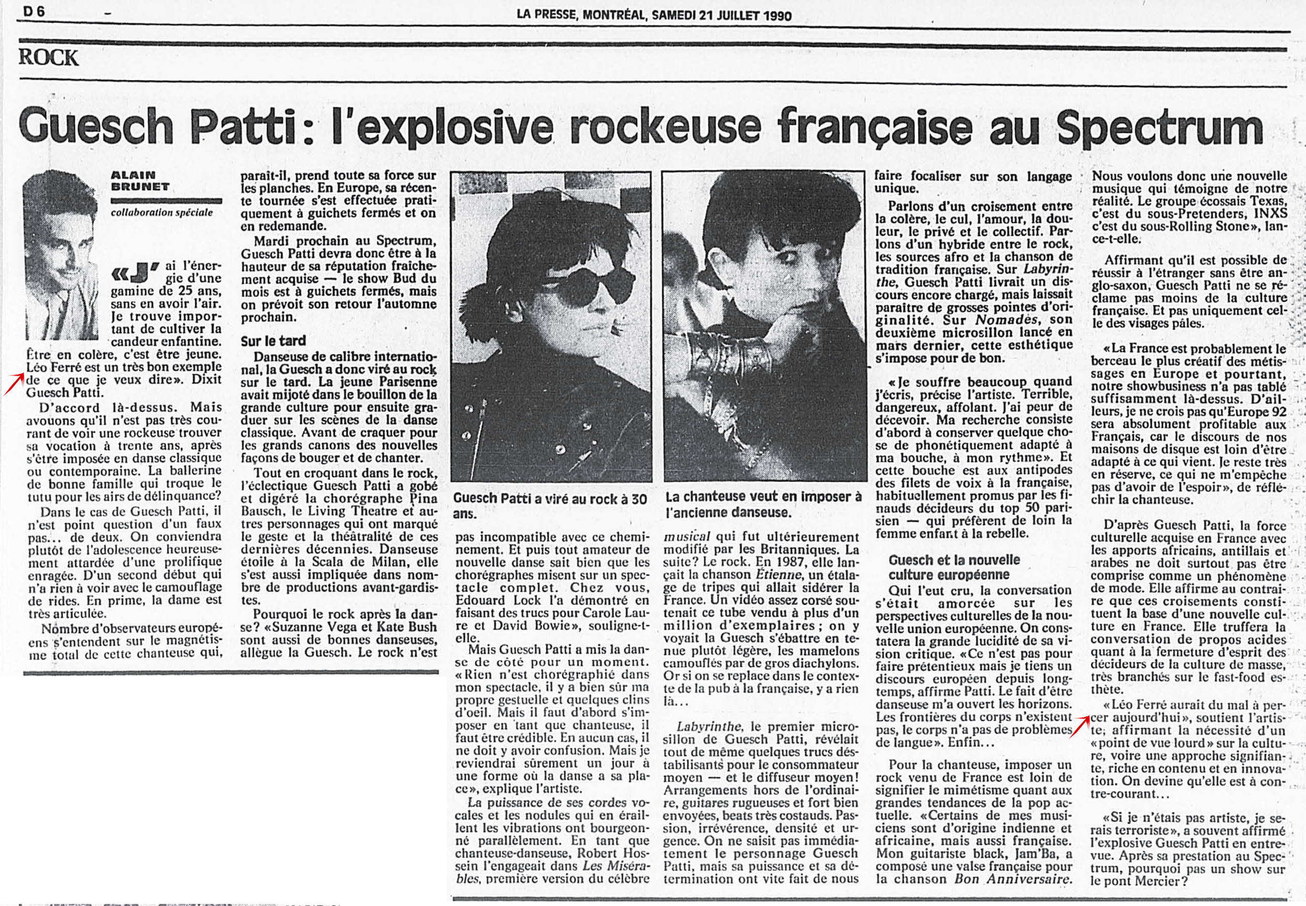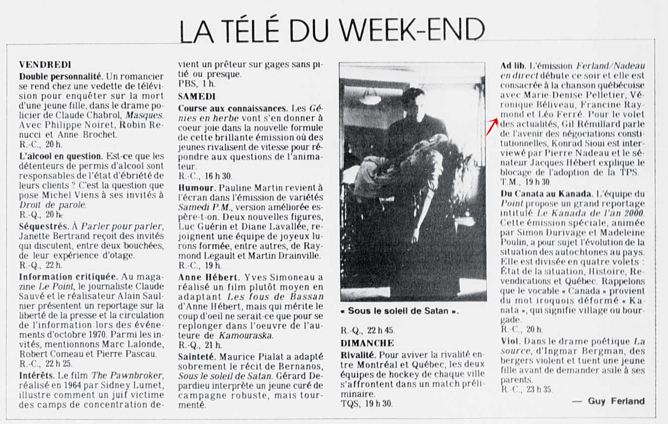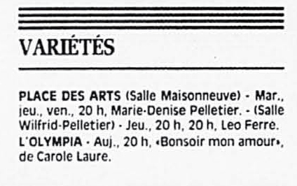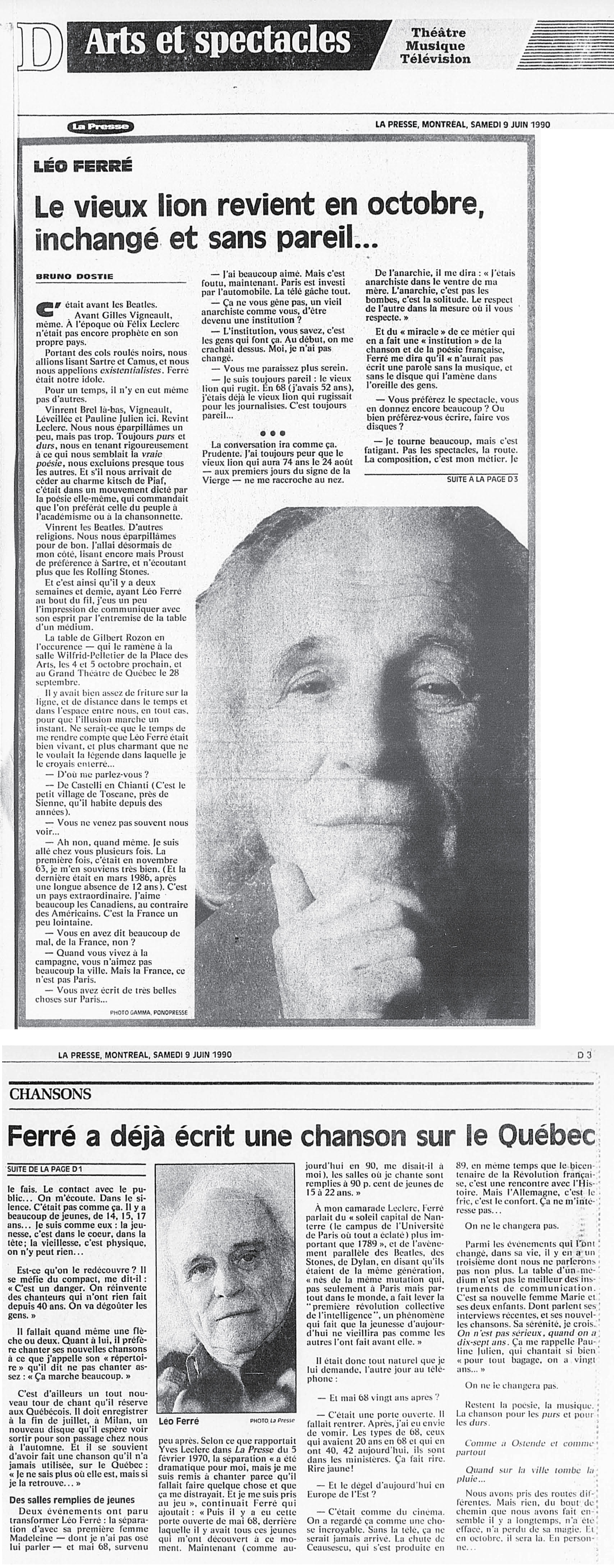 La Presse, 1 décembre 1990, D. Arts et spectacles