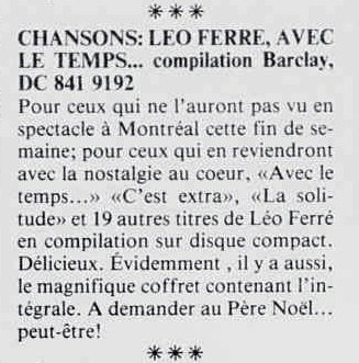 • Publicité pour le double CD Avec le temps, compilation du coffret de 11 CD.