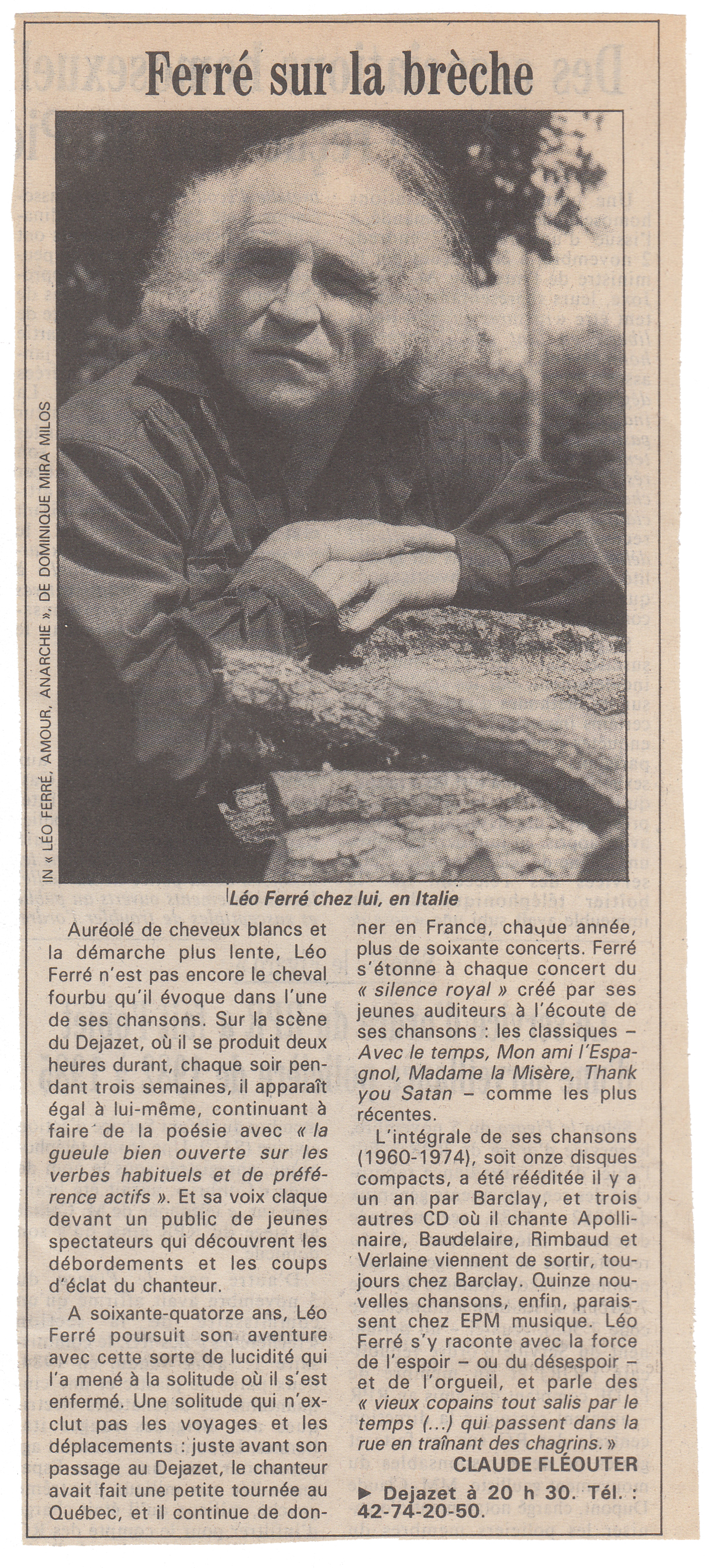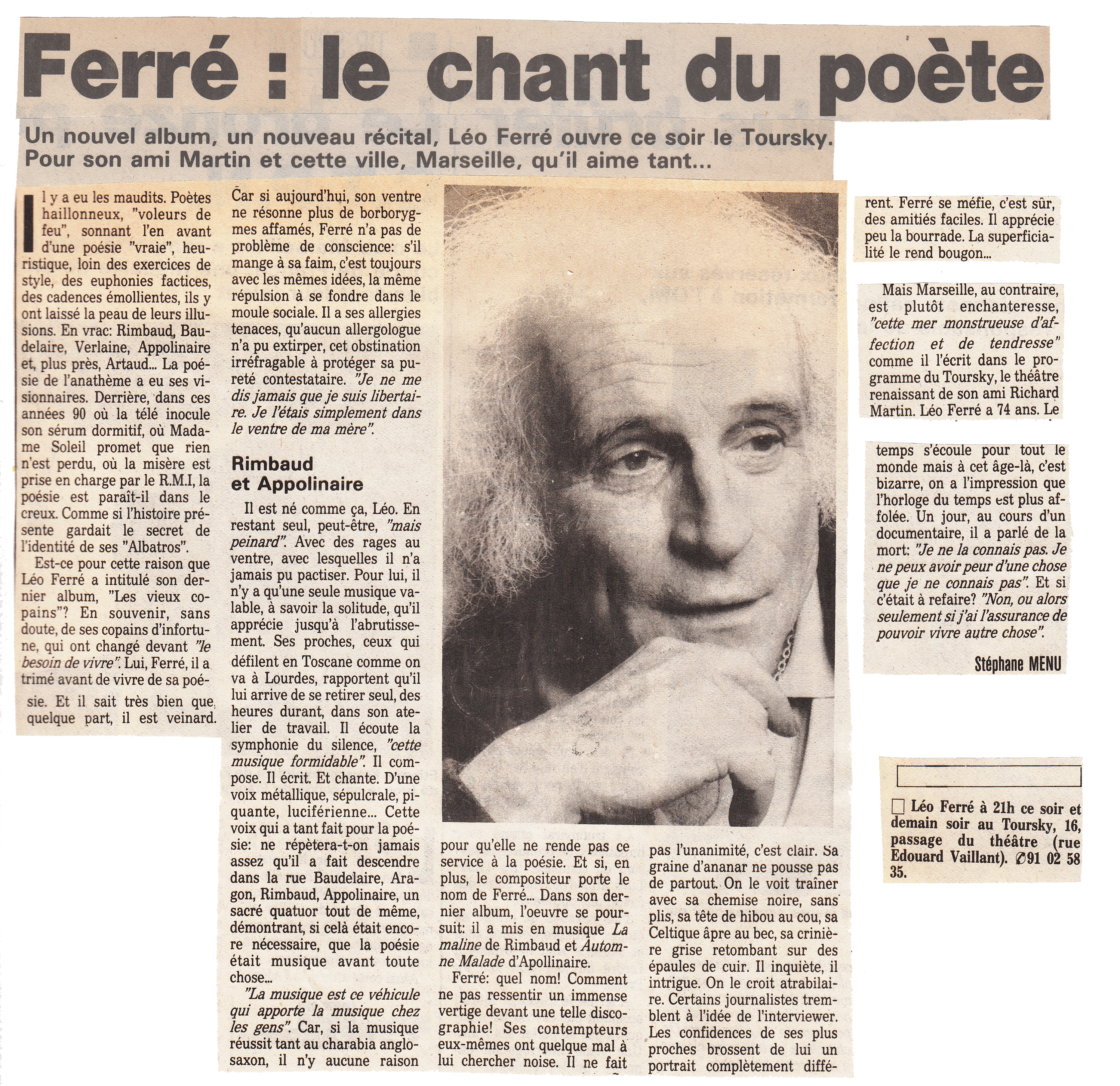 Radio bleue avec Léo Ferré en début d'année 1990.