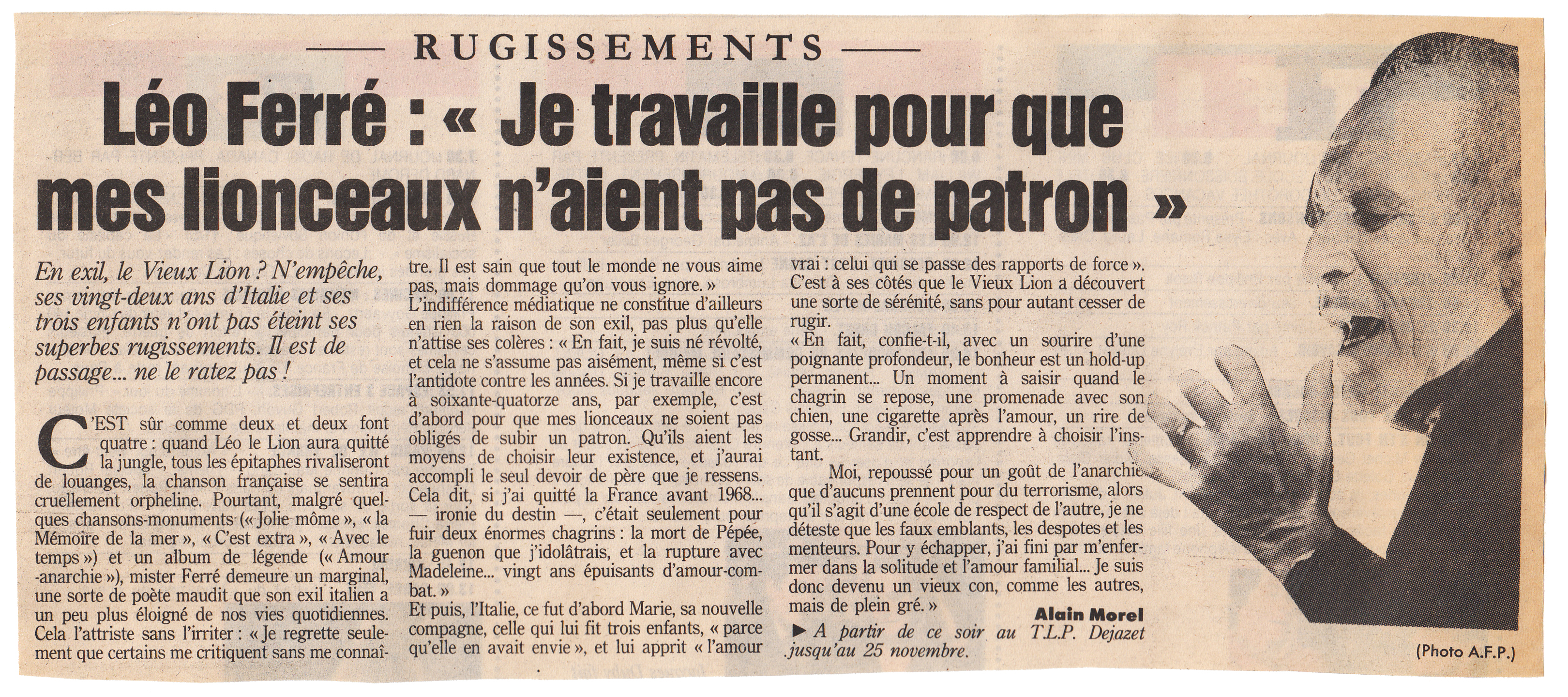 • Léo Ferré : "§Je travaille pour que mes lionceaux n'aient pas de patron"