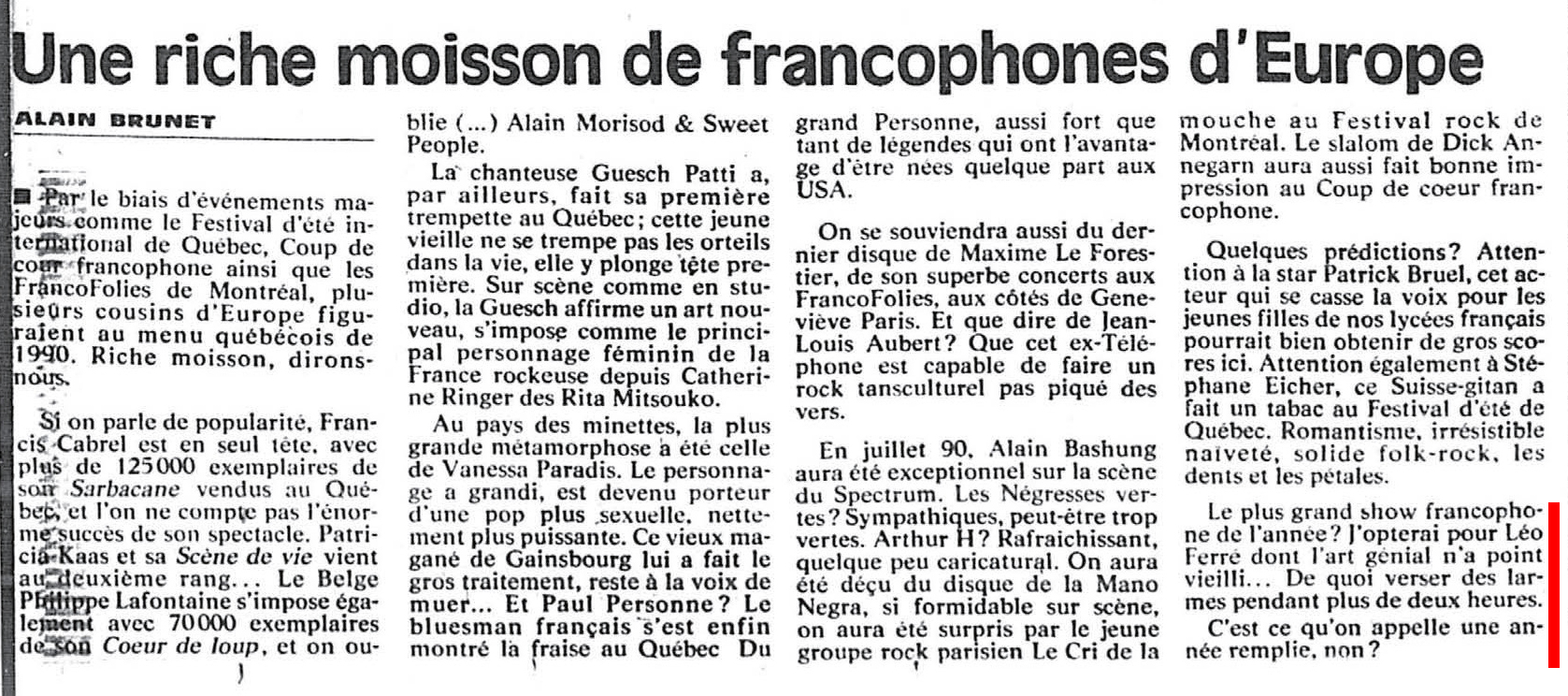 La Presse, 29 décembre 1990, D. Arts et spectacles