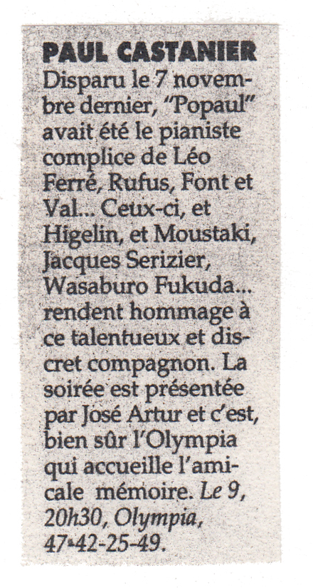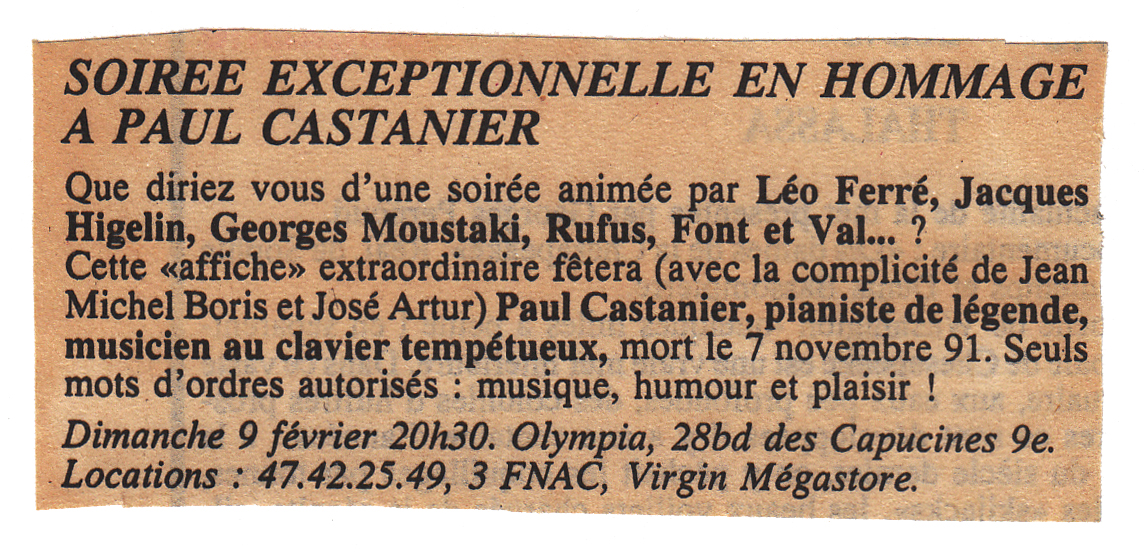 • Soirée exceptionnelle en hommage à Paul Castanier