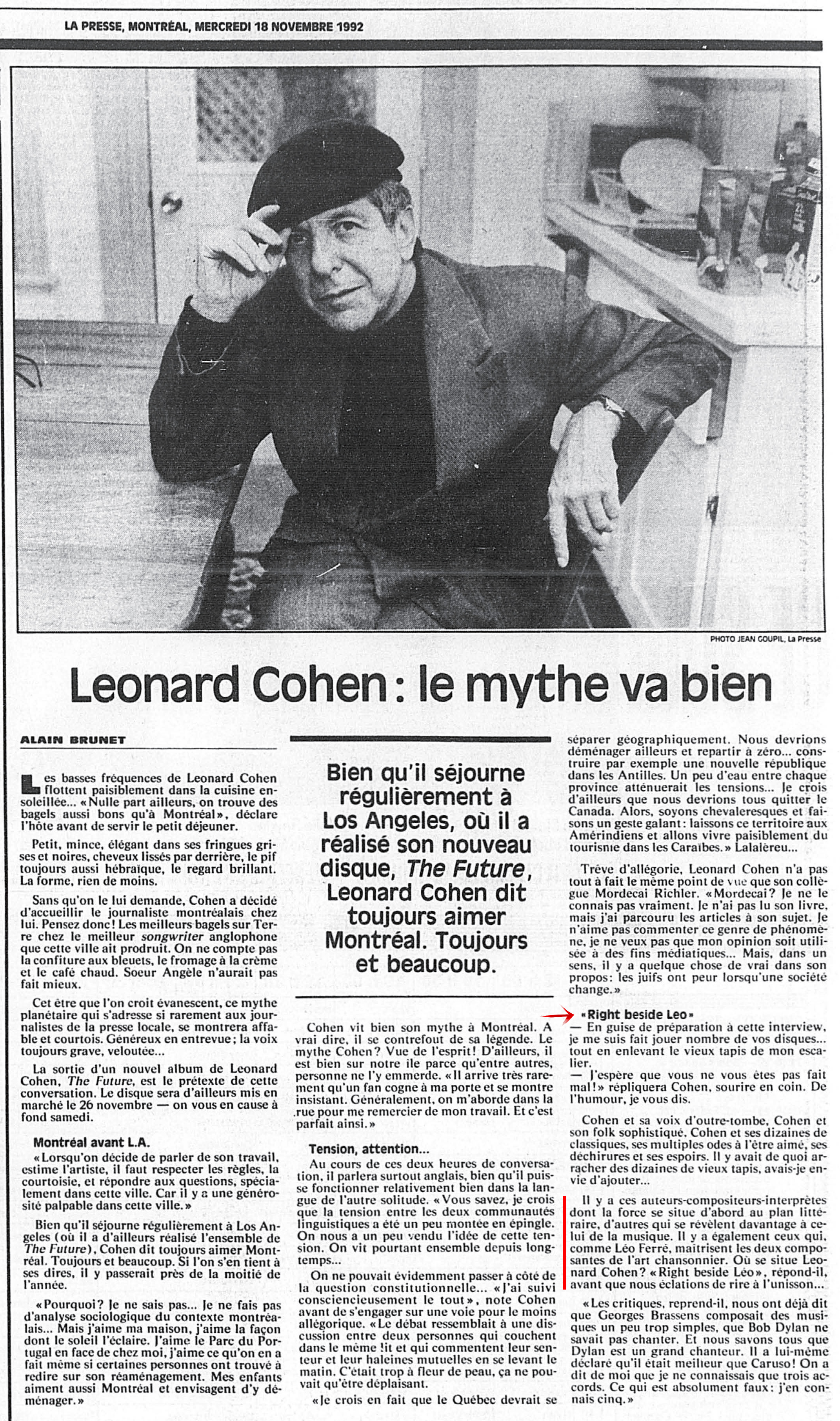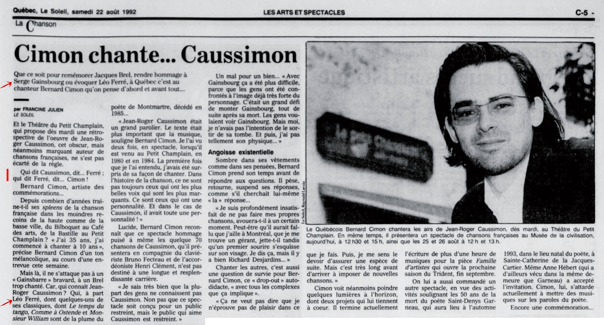 La Presse, 18 novembre 1992, C. Arts et spectacles