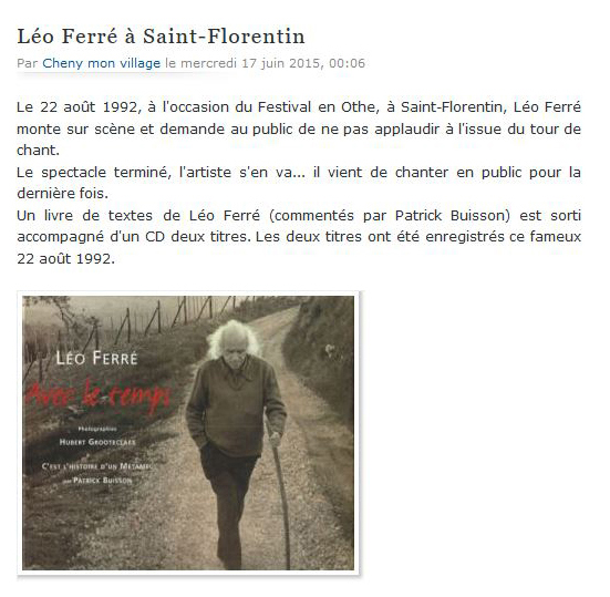 27.08 : Léo Ferré à Saint-Florentin (et non le 22/08/1992). Festival en Othe (spectacle enregistré).