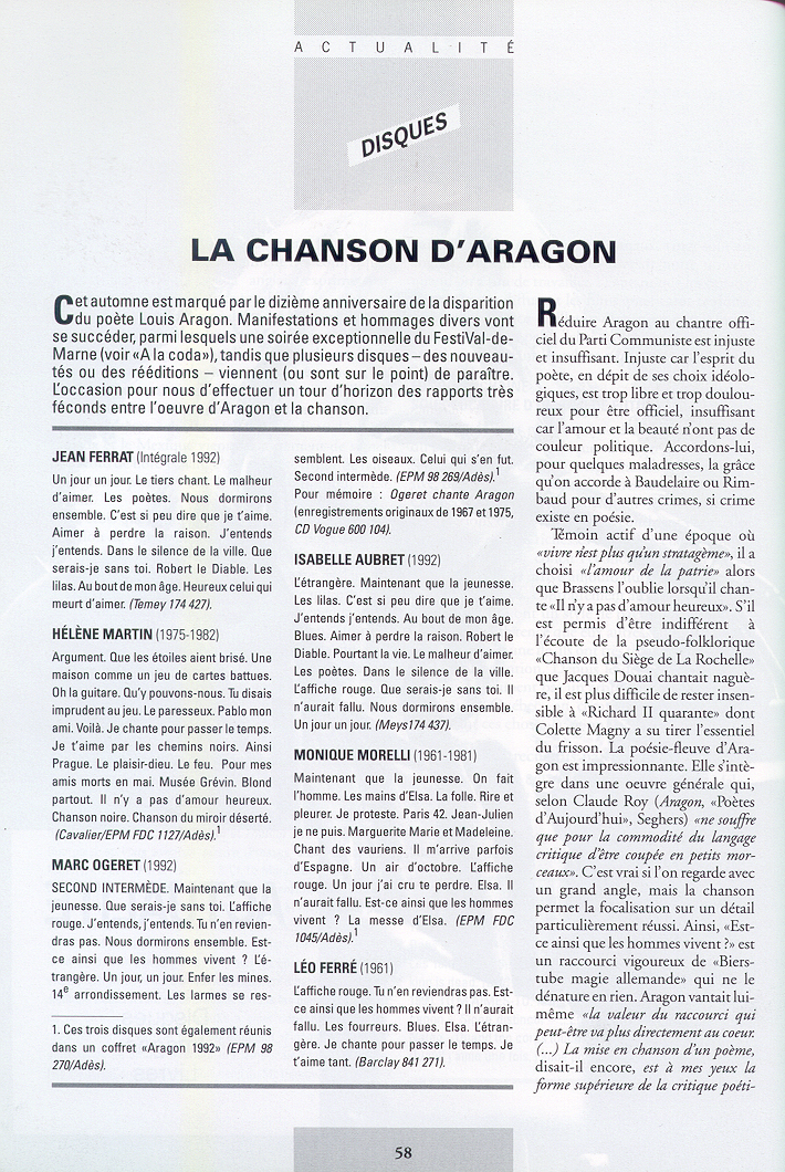 • La chanson d'Aragon, par Jean-Jacques Jelot-Blanc