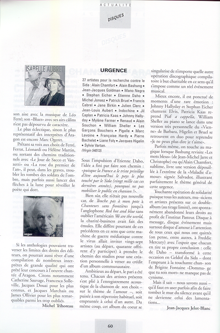 Je Chante-Discographie n°7, mensuel de Mars 1992