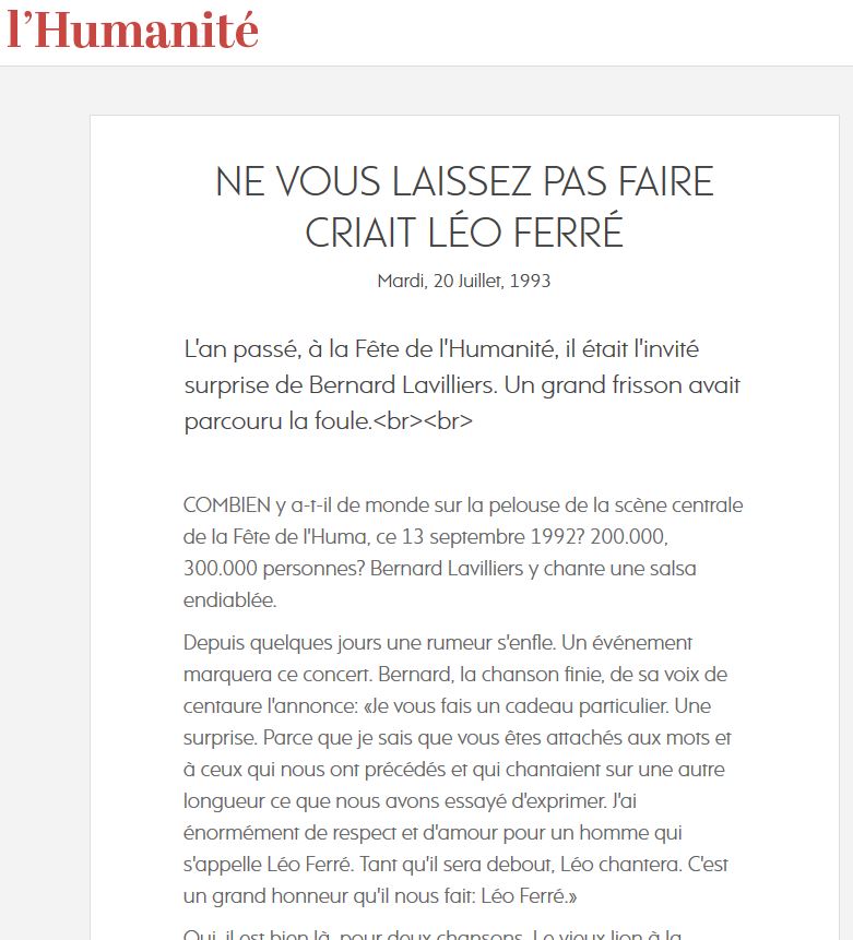 Léo viendra chanter Les anarchistes et Est-ce ainsi que les hommes vivent ? à l'invitation de Bernard Lavilliers.
