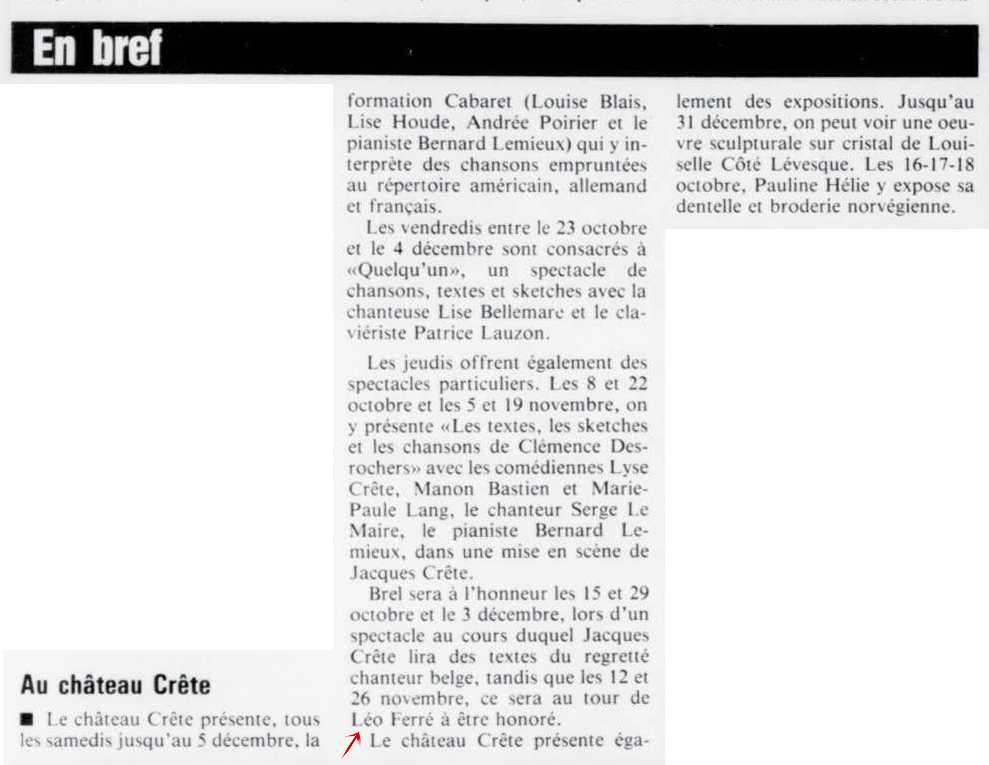 La Presse, 17 octobre 1992, E. Arts et spectacles