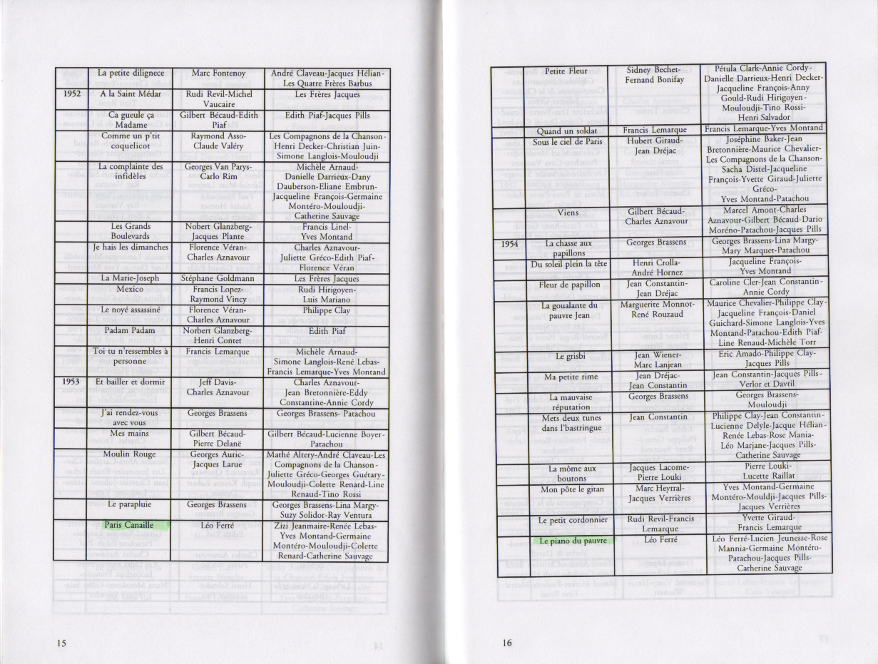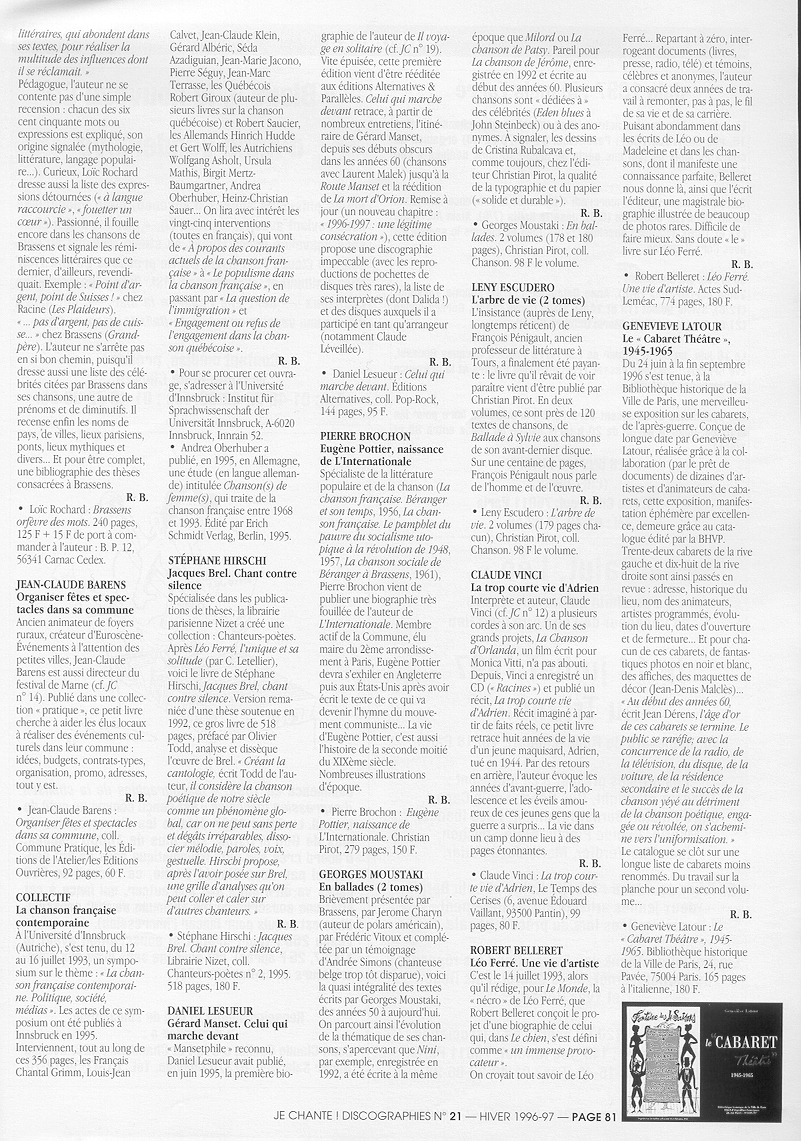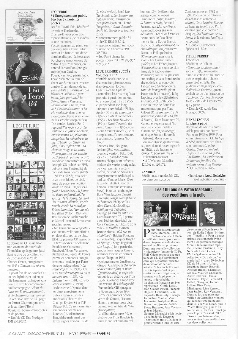 Je chante ! Discographies, Hiver 1997-1998